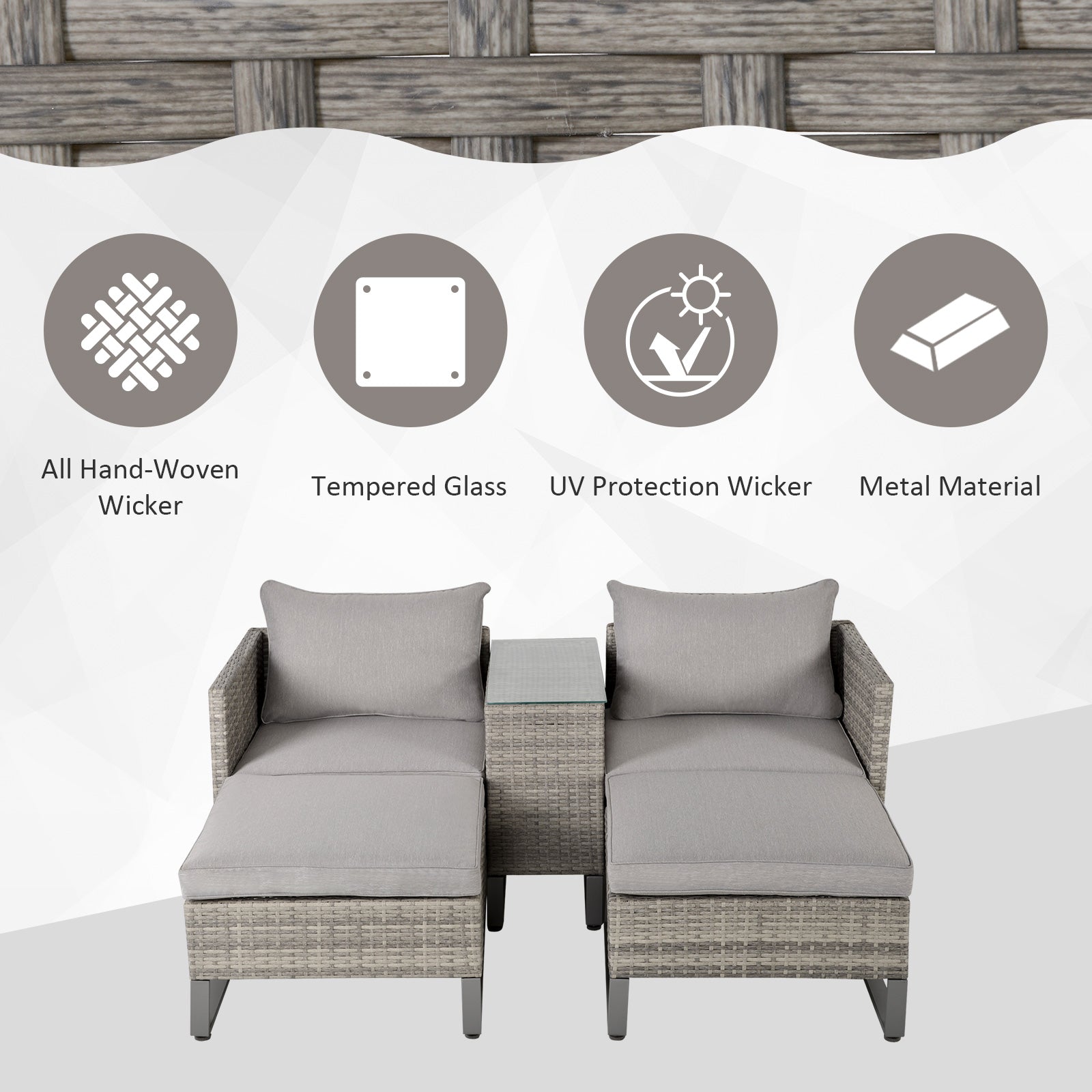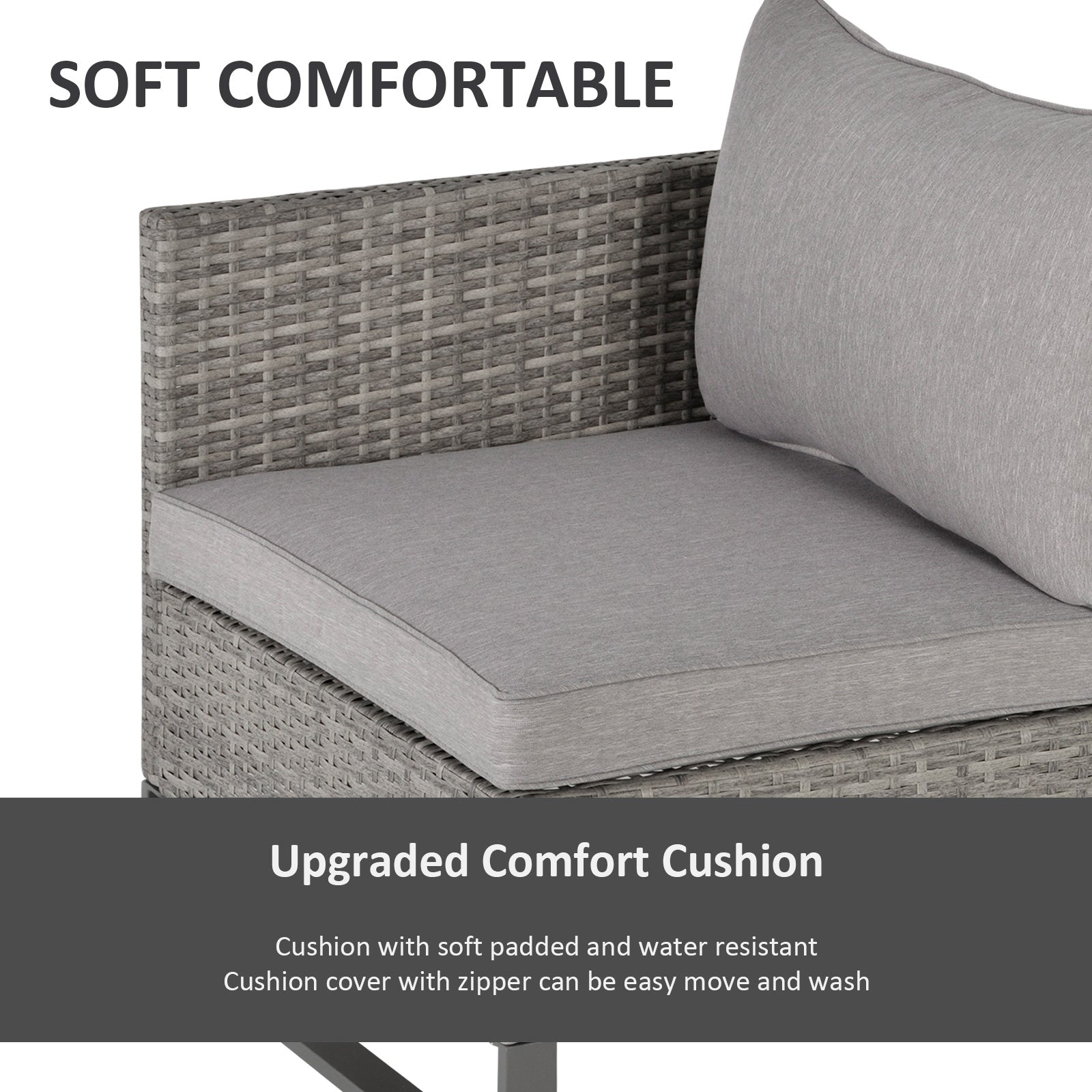 Outsunny 2 Seater Patio Rattan Wicker Sofa Set Chaise Lounge Double Sofa Bed Furniture w/ Coffee Table & Footstool for Patios, Garden, Backyard, Grey