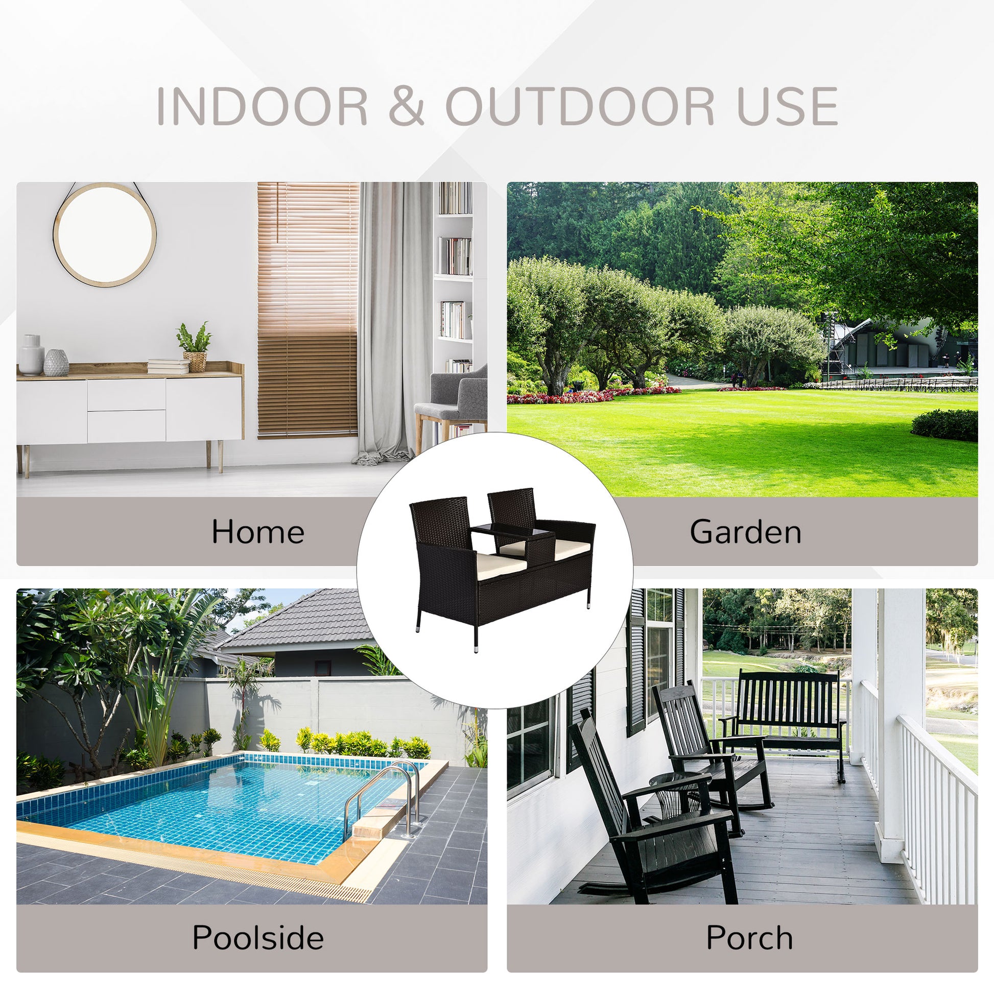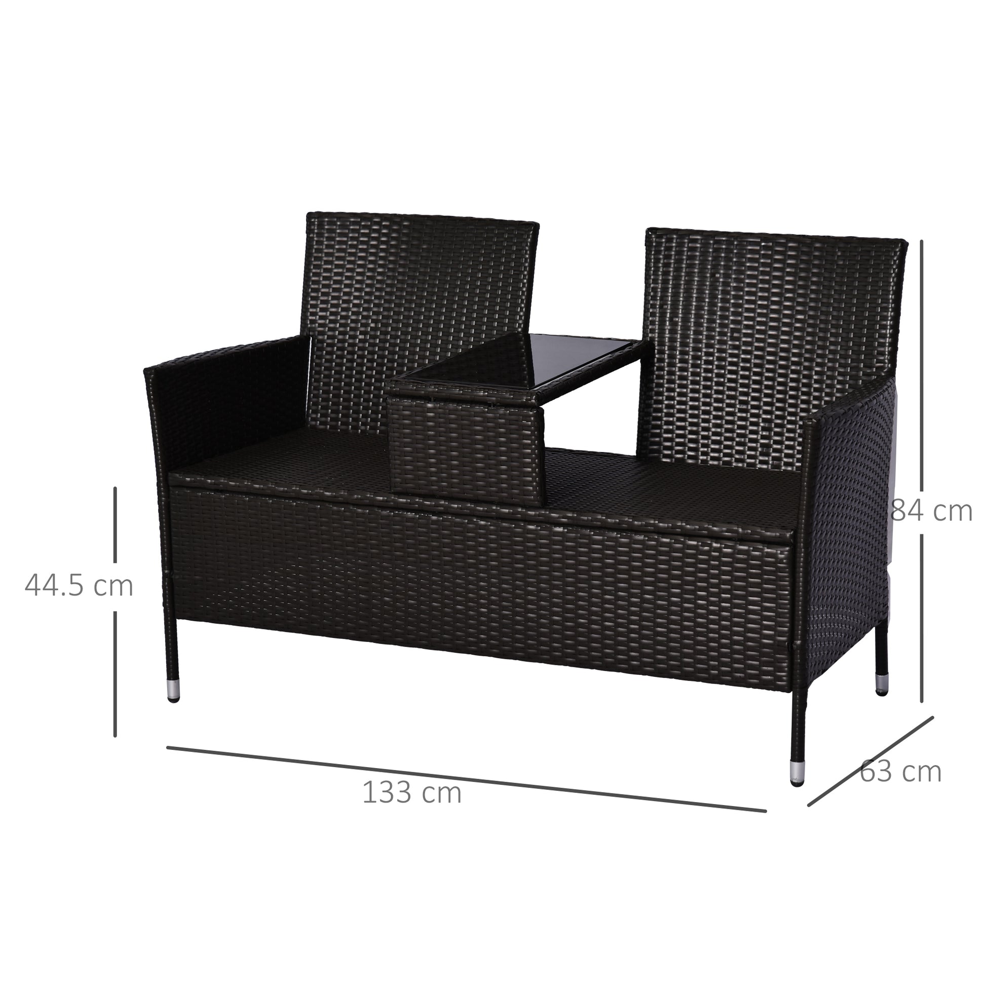 Outsunny 2 Seater Rattan Dining Chairs Wicker Loveseat Outdoor Patio Armchair with Drink Table Garden Furniture - Dark Brown