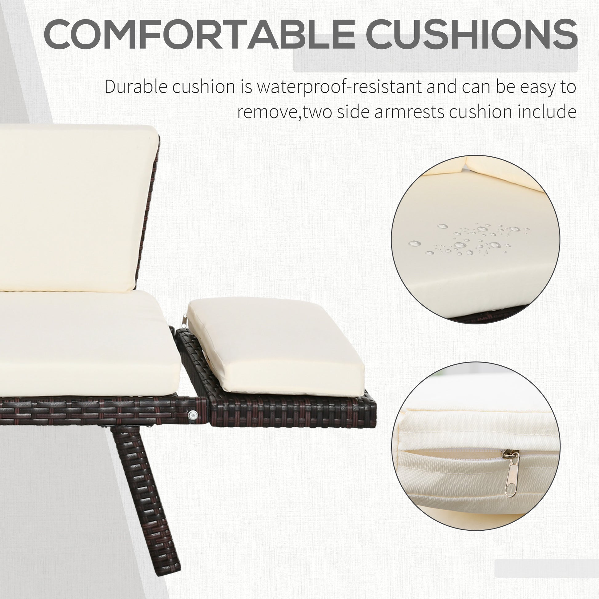 Outsunny 2 Seater Rattan Folding Daybed Sofa Bench Garden Chaise Lounger Loveseat with Cushion Outdoor Patio Brown