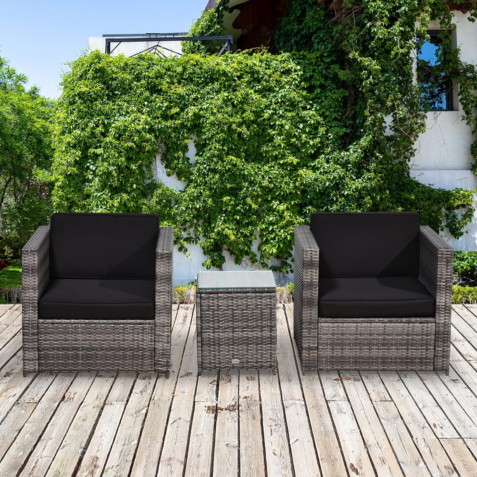 Outsunny 2 Seater Rattan Garden Furniture Sofa Furniture Set W/Cushions, Steel Frame-Grey