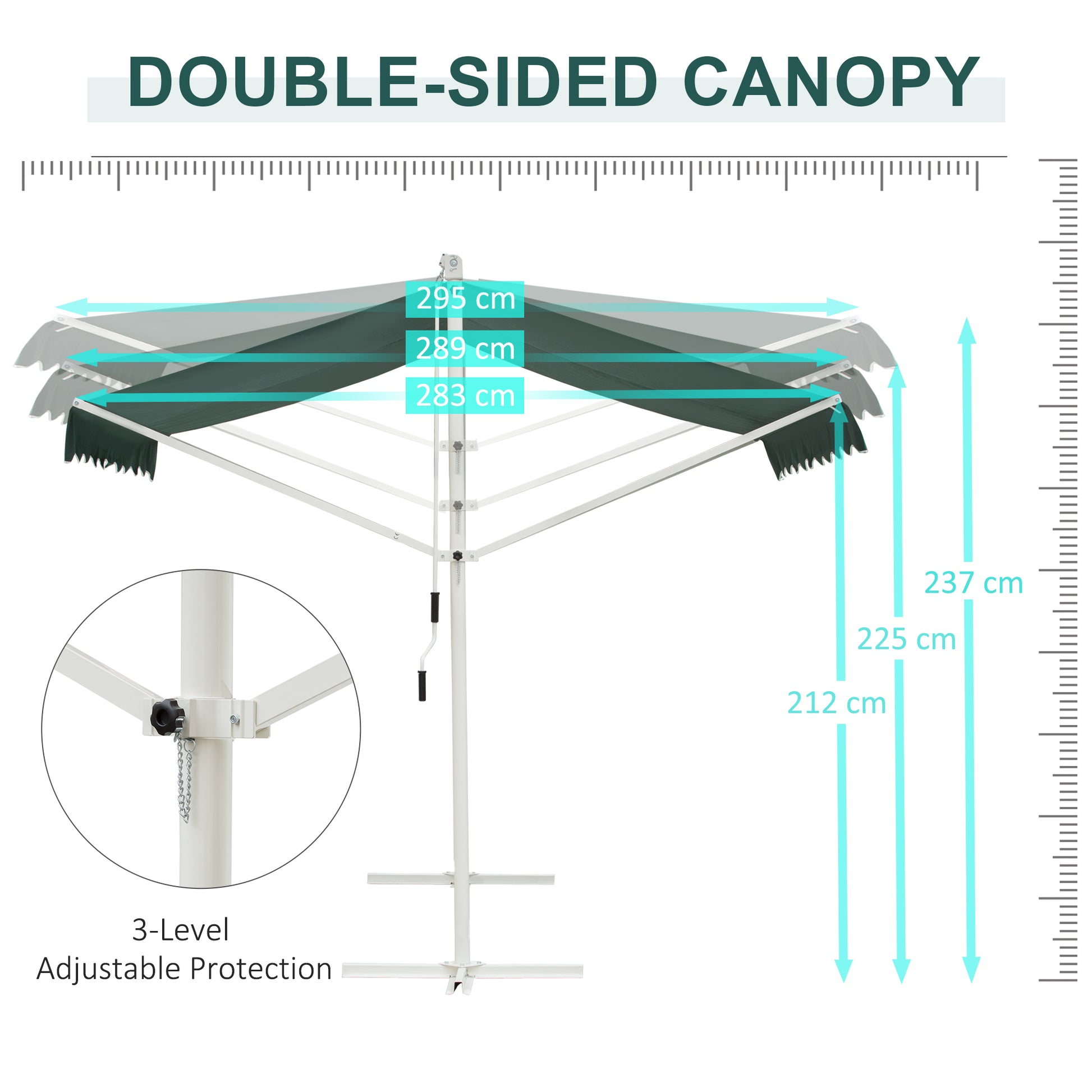 Outsunny 2 Side Manual Awning Garden Adjustable Canopy Free Standing Awning Shelter, 300 x 300 cm, Green and White