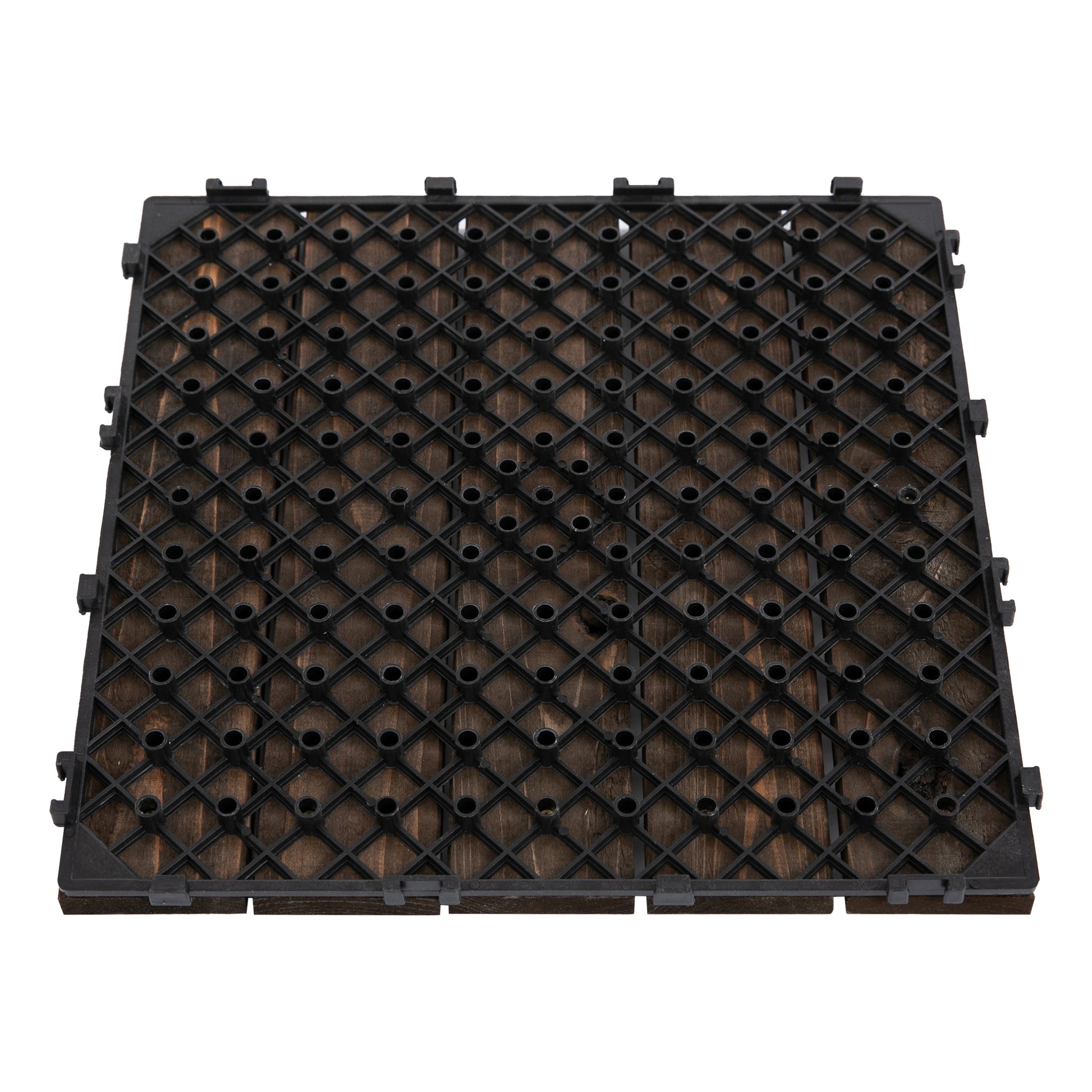 Outsunny 27 Piece Solid Wood Interlocking Decking Tiles For Patio, Balcony, Roof Terrace, Hot Tub, Black, (30 x 30 cm Per Piece)