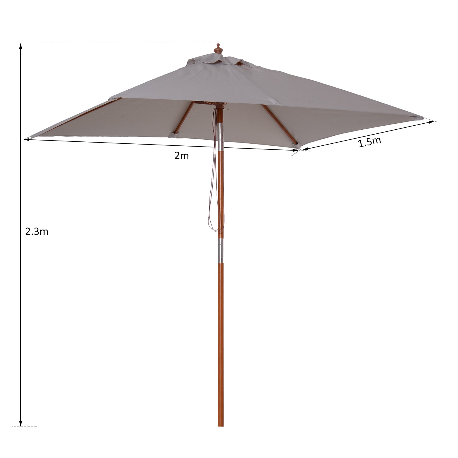 Outsunny 2m x 1.5m Patio Garden Parasol Sun Umbrella Sunshade Canopy Outdoor Backyard Furniture Fir Wooden Pole 6 Ribs Tilt Mechanism - Grey