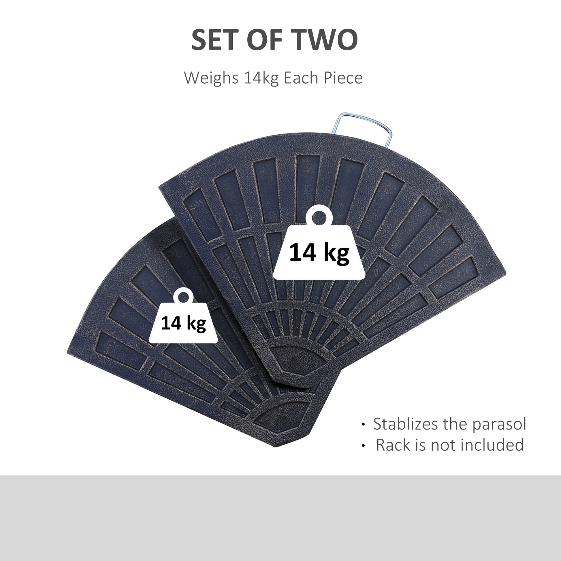 Keep your parasol umbrella weighted beautifully and effectively with this set of two bases from Outsunny. Made from rosin, it is crafted into a textured fan design, allowing it to blend in with your garden furniture with ease. A beautiful addition to your garden that keeps your parasol umbrella firmly in place all day long. Please note, only the two bases are included in this package, not the stand and they are only suitable for cross base parasols.