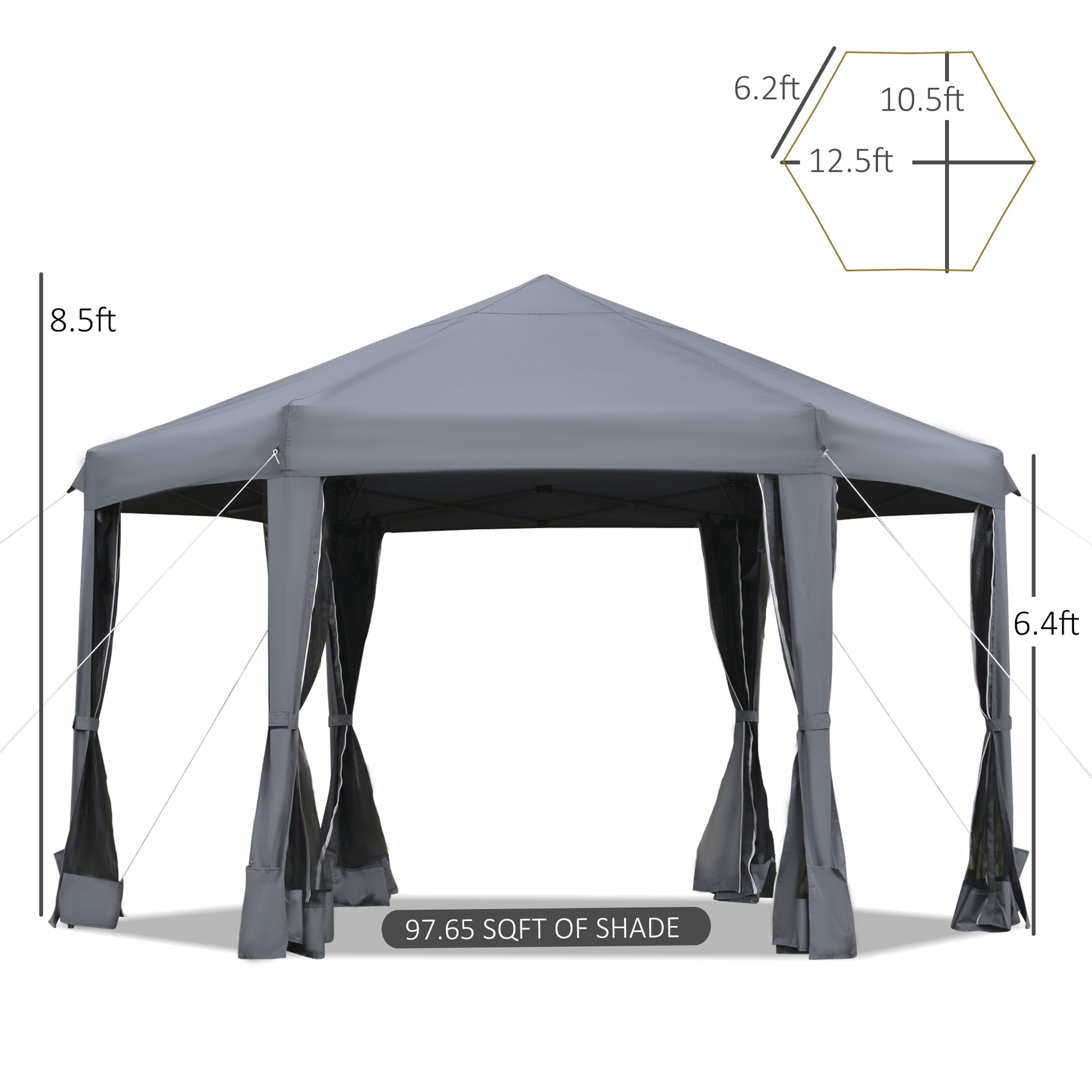 Outsunny 3.2m Canopy Rentals Pop Up Gazebo Hexagonal Canopy Tent Outdoor Sun Protection w/ Mesh Sidewalls, Handy Bag, Grey