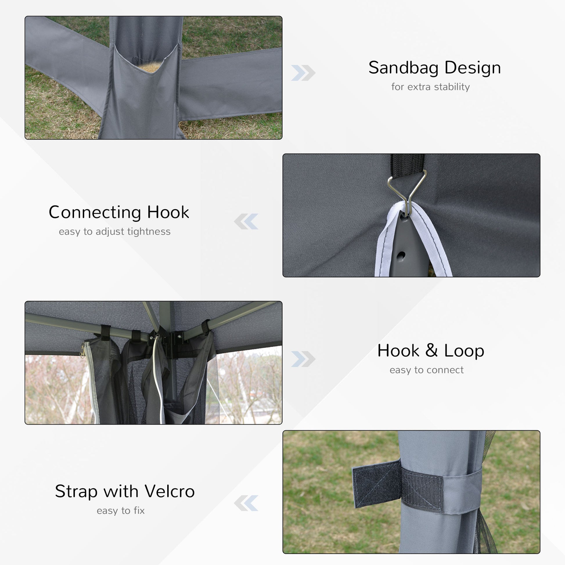 - 6 Sandbags of the sidewalls for putting sand to add stability