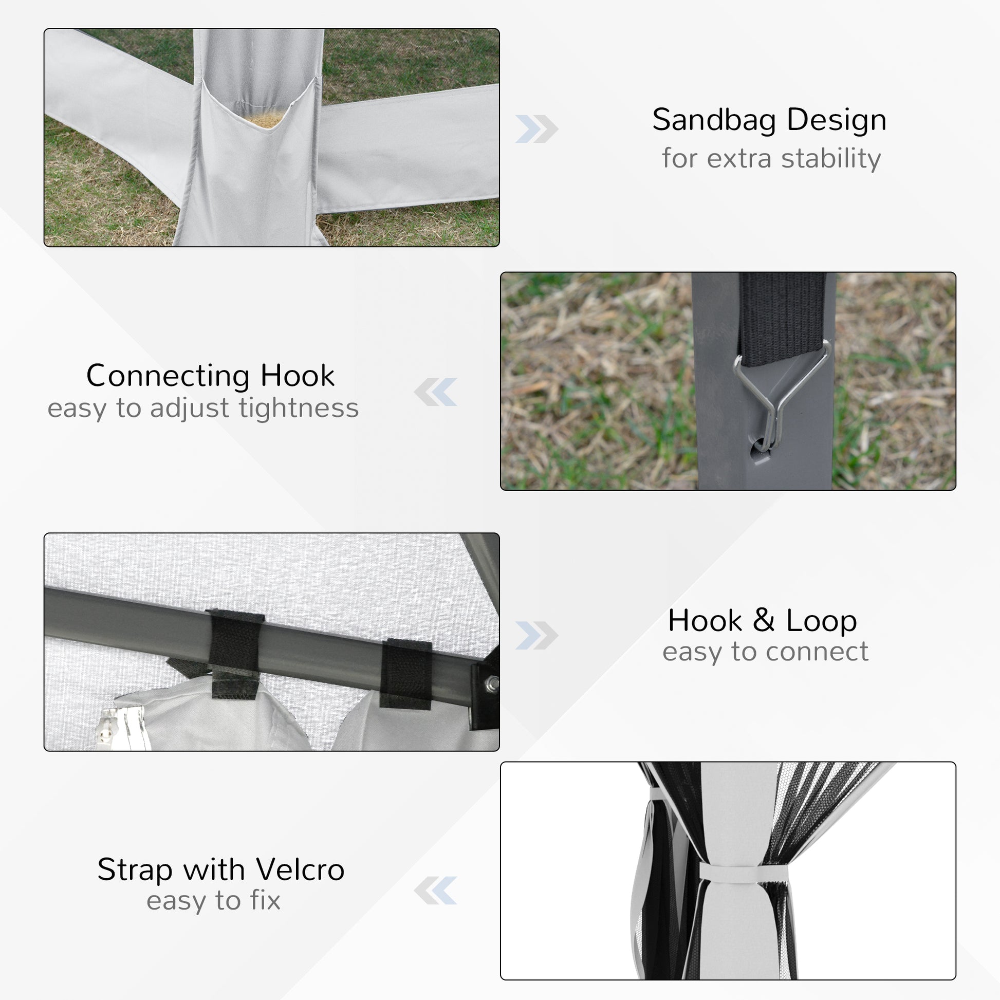 - 6 Sandbags of the sidewalls for putting sand to add stability