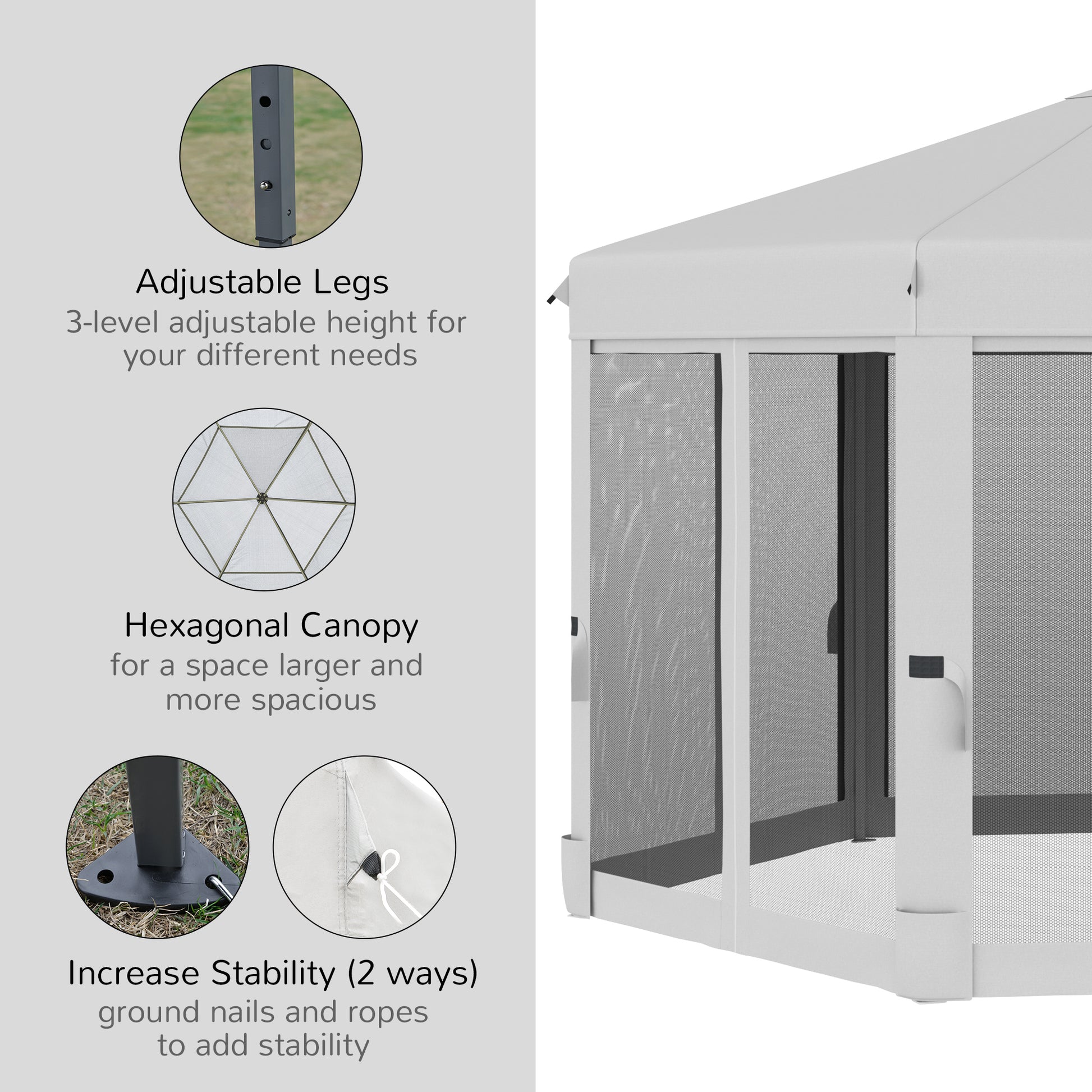 Outsunny 3.2m Pop Up Gazebo Hexagonal Canopy Tent Outdoor Sun Protection with Mesh Sidewalls, Handy Bag, Light Grey