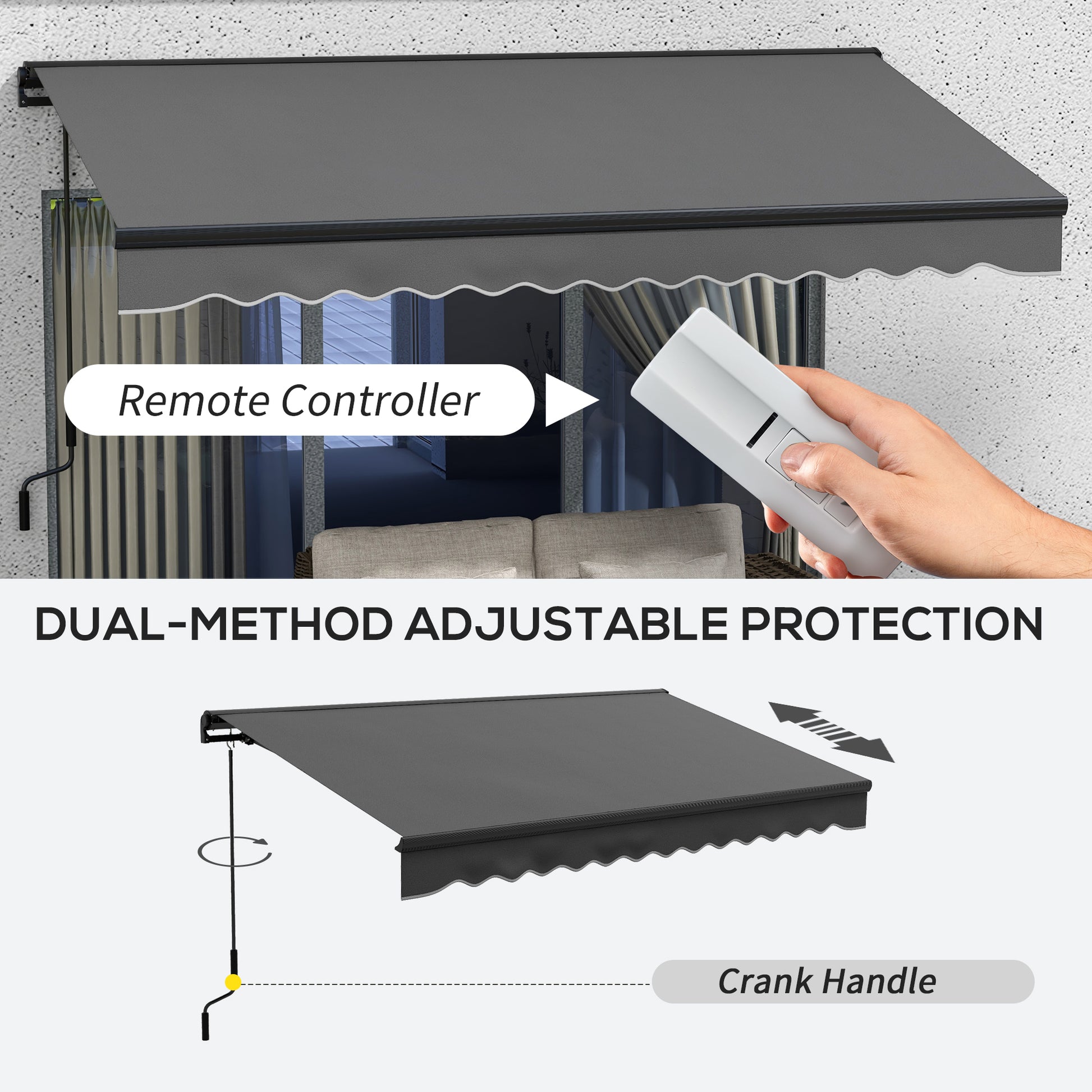 Outsunny 3.5 x 2.5m Aluminium Frame Electric Awning, Retractable Awning Sun Canopies for Patio Door Window, Dark Grey