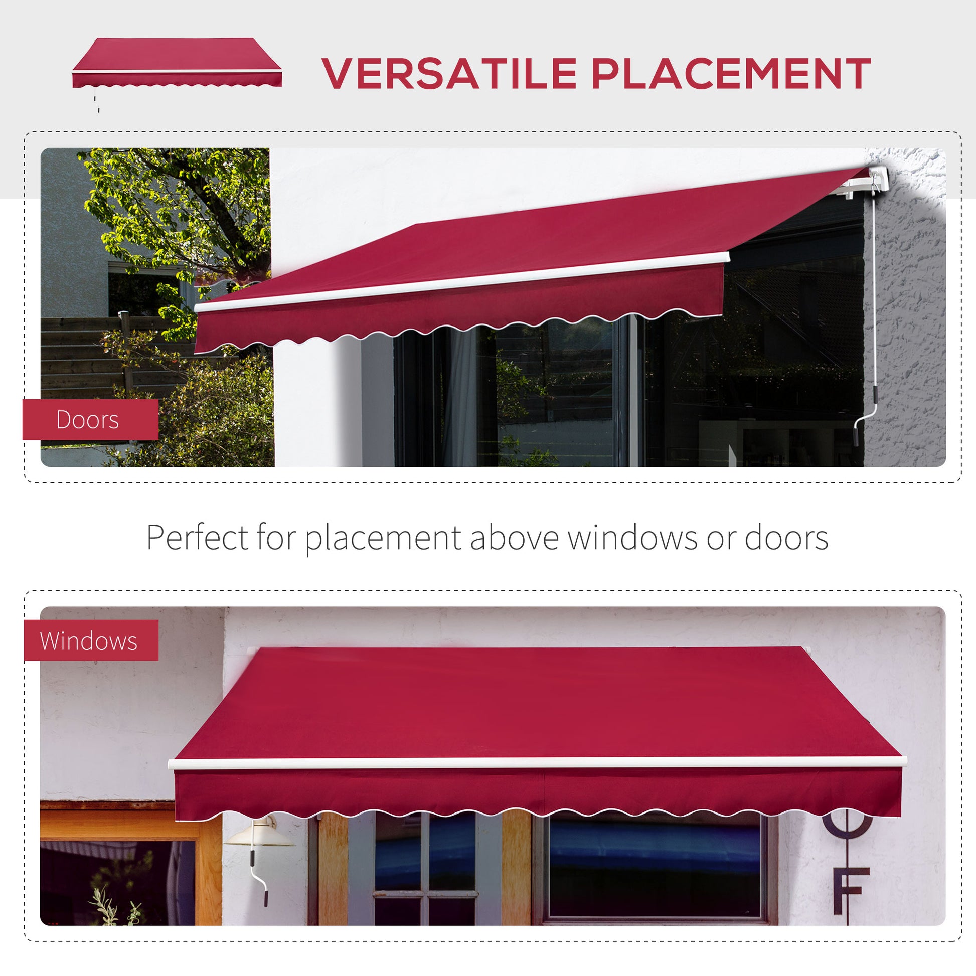 Outsunny 3.5M x 2.5M Garden Patio Manual Awning Canopy Sun Shade Shelter Retractable Winding Handle Wine Red