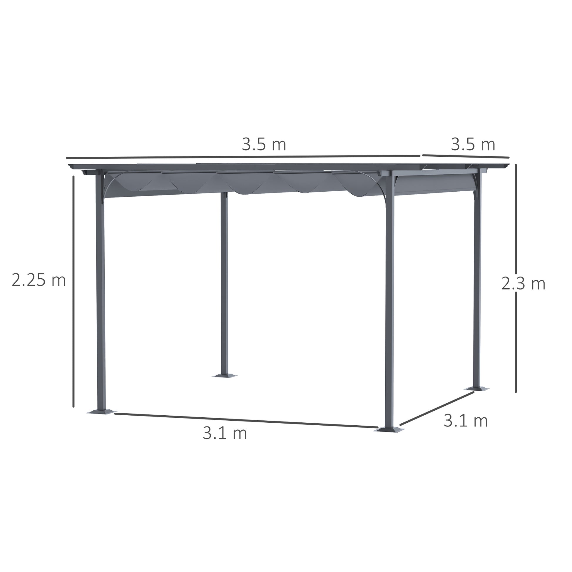 Outsunny 3.5M X 3.5M Metal Pergola Gazebo Awning Retractable Canopy Outdoor Garden Sun Shade Shelter Marquee Party BBQ, Grey