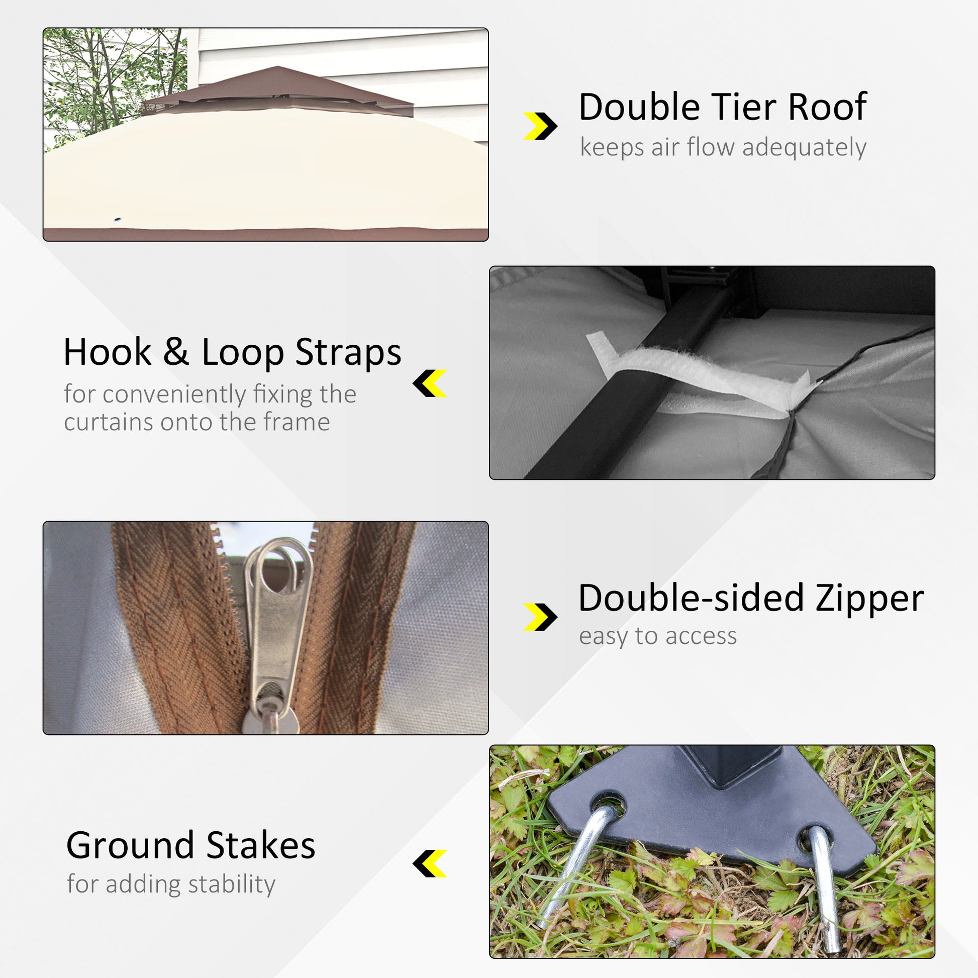 Outsunny 3.6 x 3.6 m Pop up Gazebo with Netting, Height Adjustable Party Tent Instant Canopy Sun Shade Shelter, Khaki