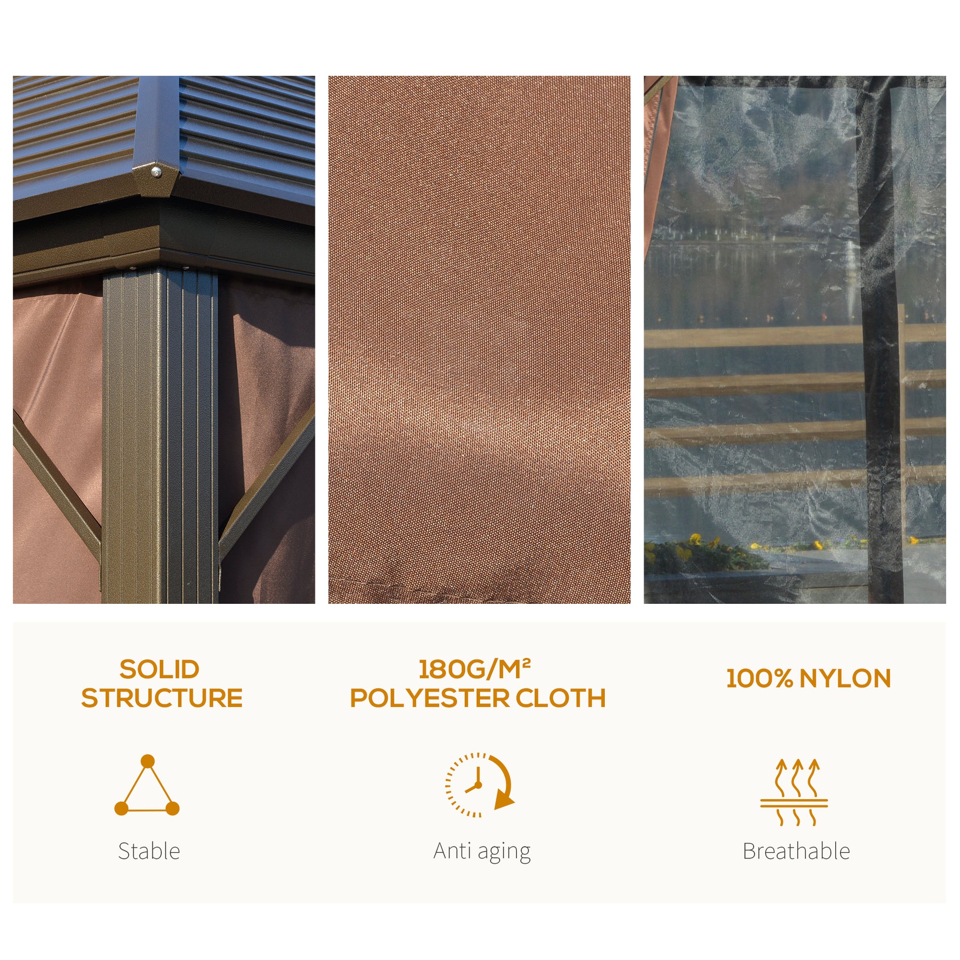 This garden pavilion from Outsunny adds style to your outdoor space. The steel panel roof provides shelter from the sun and rain. The polyester curtains and breathable zipper mesh sidewalls create a comfortable space. Its large sizing provides enough shelter for yourself and several other people. You can set up this hard roof gazebo in the backyard or poolside, have a nice gathering with friends or family.