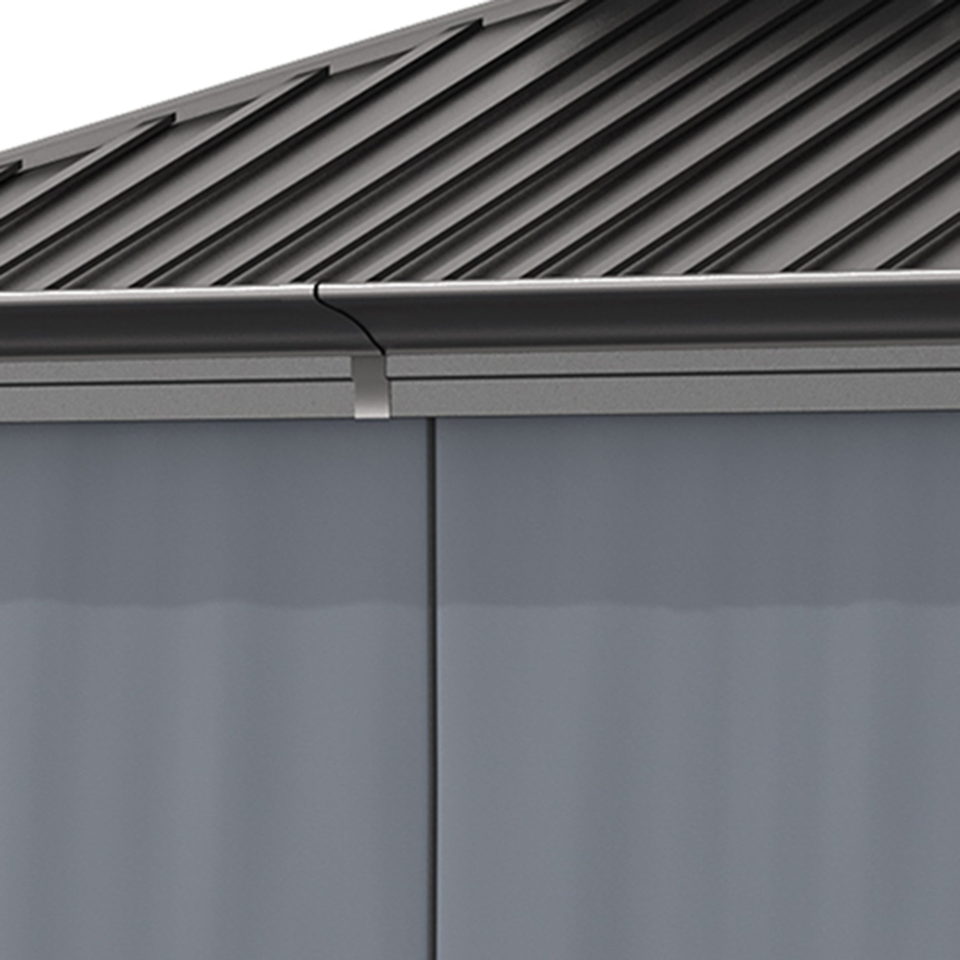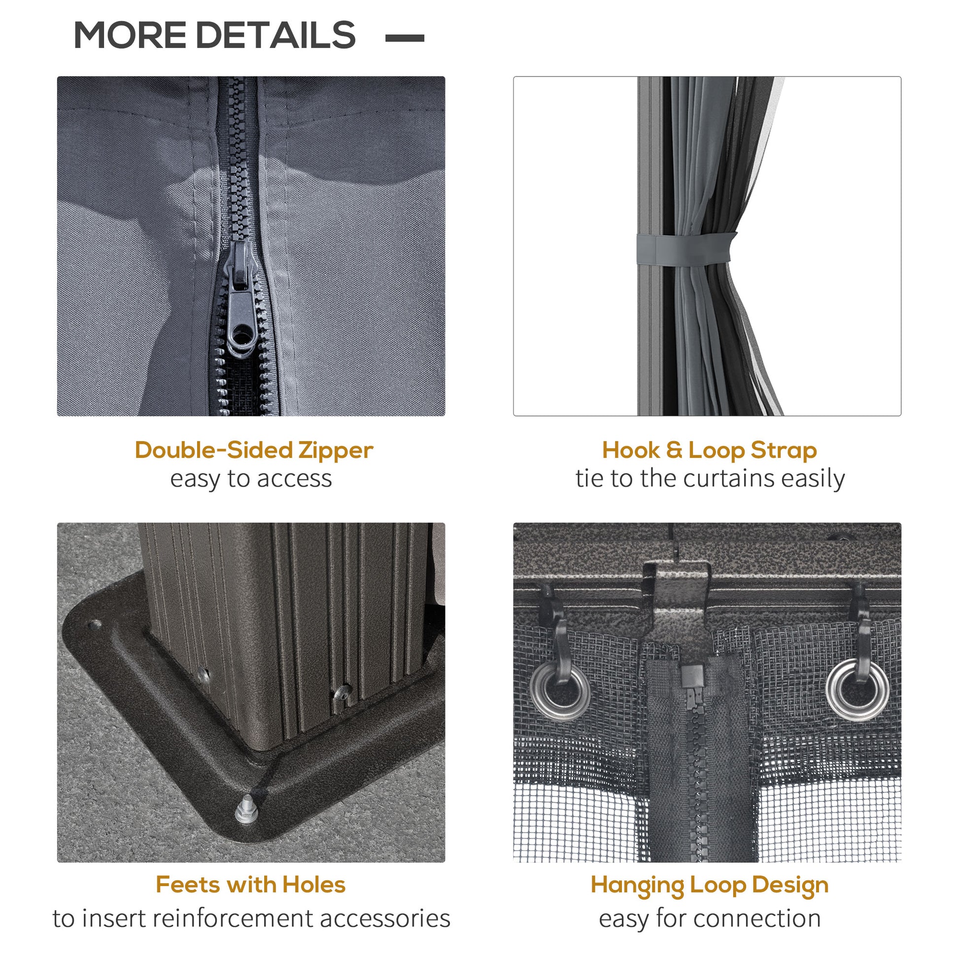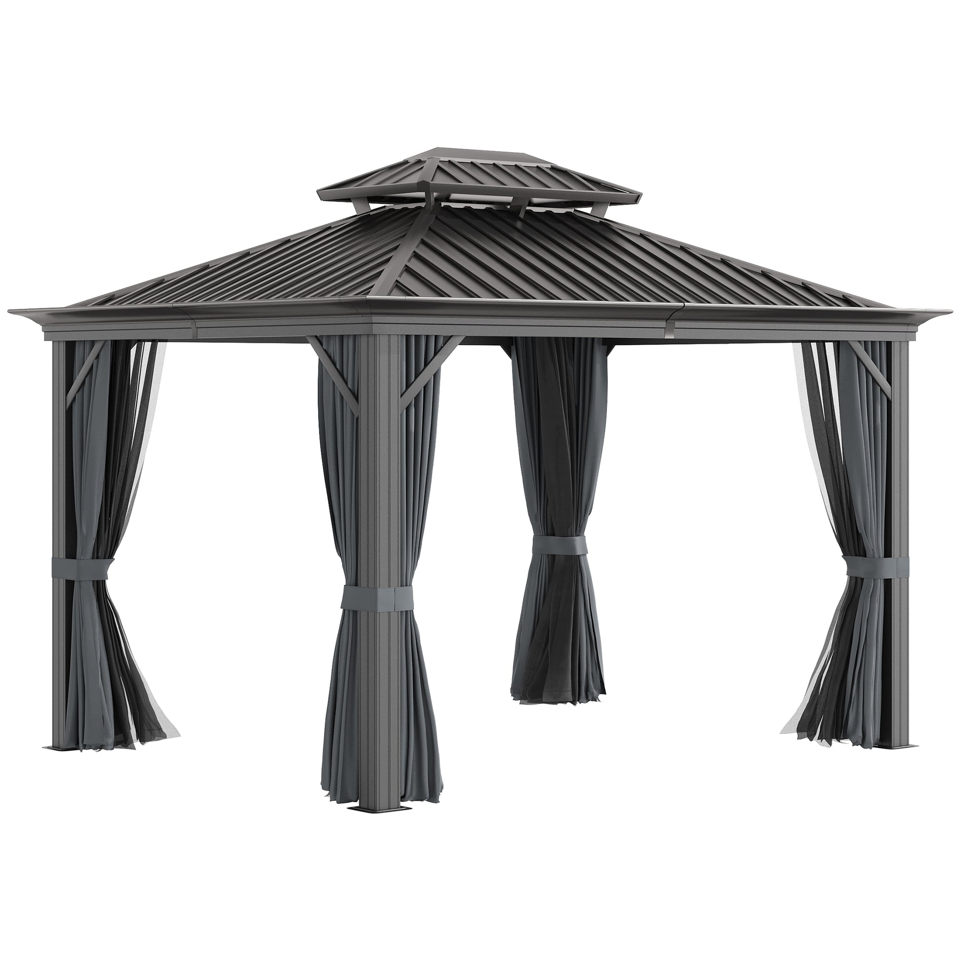 Outsunny 3.7 x 3(m) Outdoor Hardtop Gazebo Canopy Aluminum Frame with 2-Tier Roof & Mesh Netting Sidewalls for Patio, Grey
