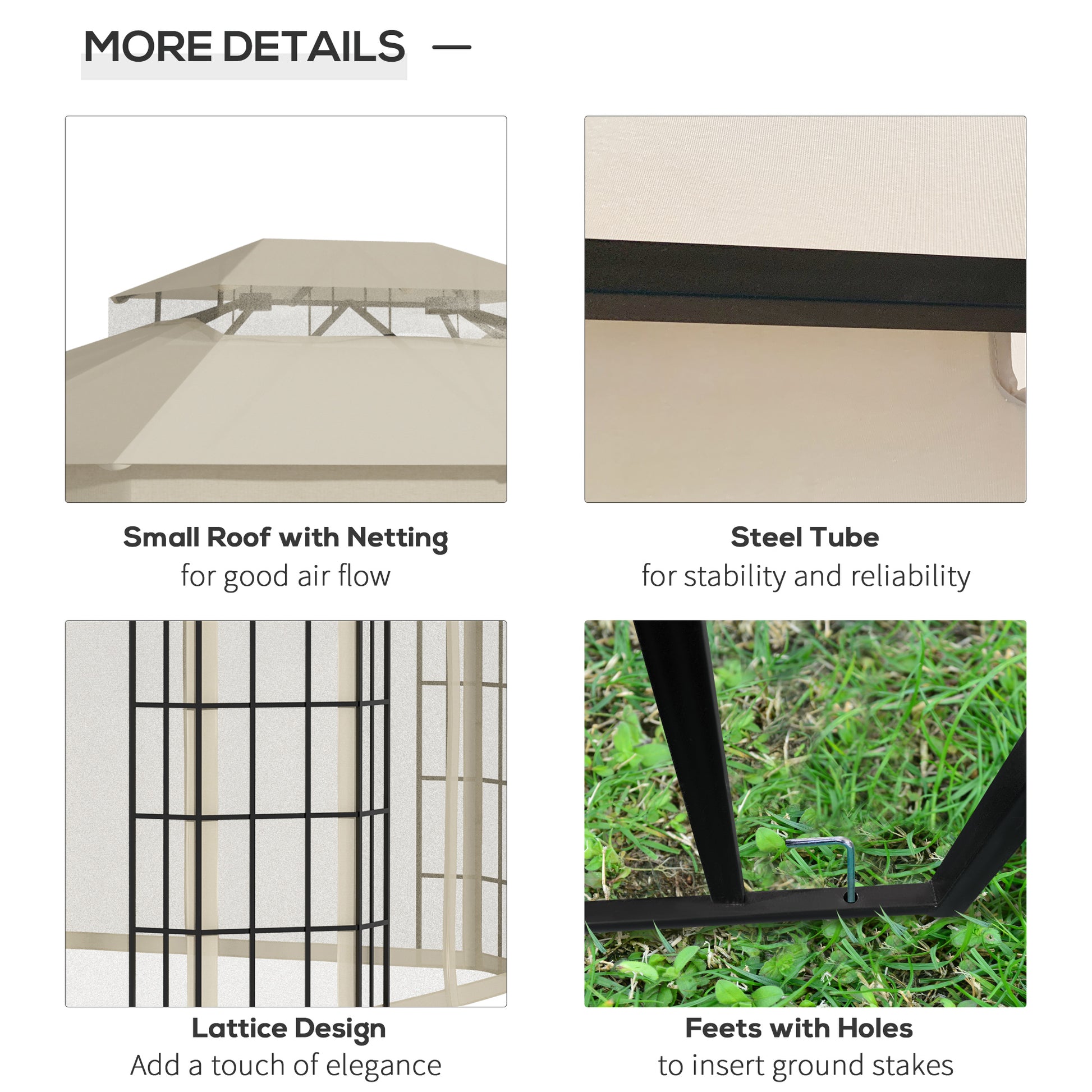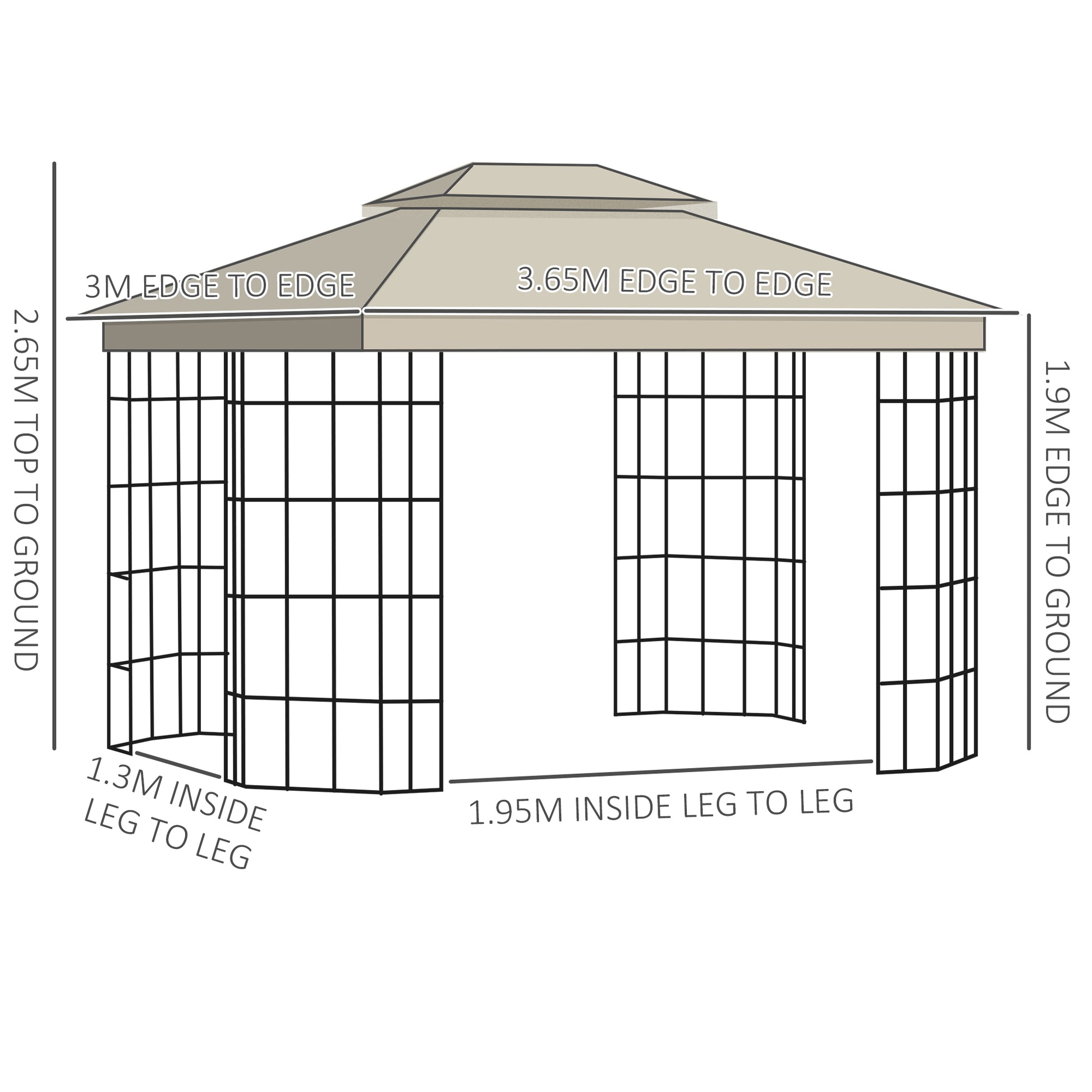 Outsunny 3.7 x 3(m) Patio Gazebo Canopy Garden Tent Shelter with 2 Tiers Roof and Mosquito Netting, Metal Frame, Beige