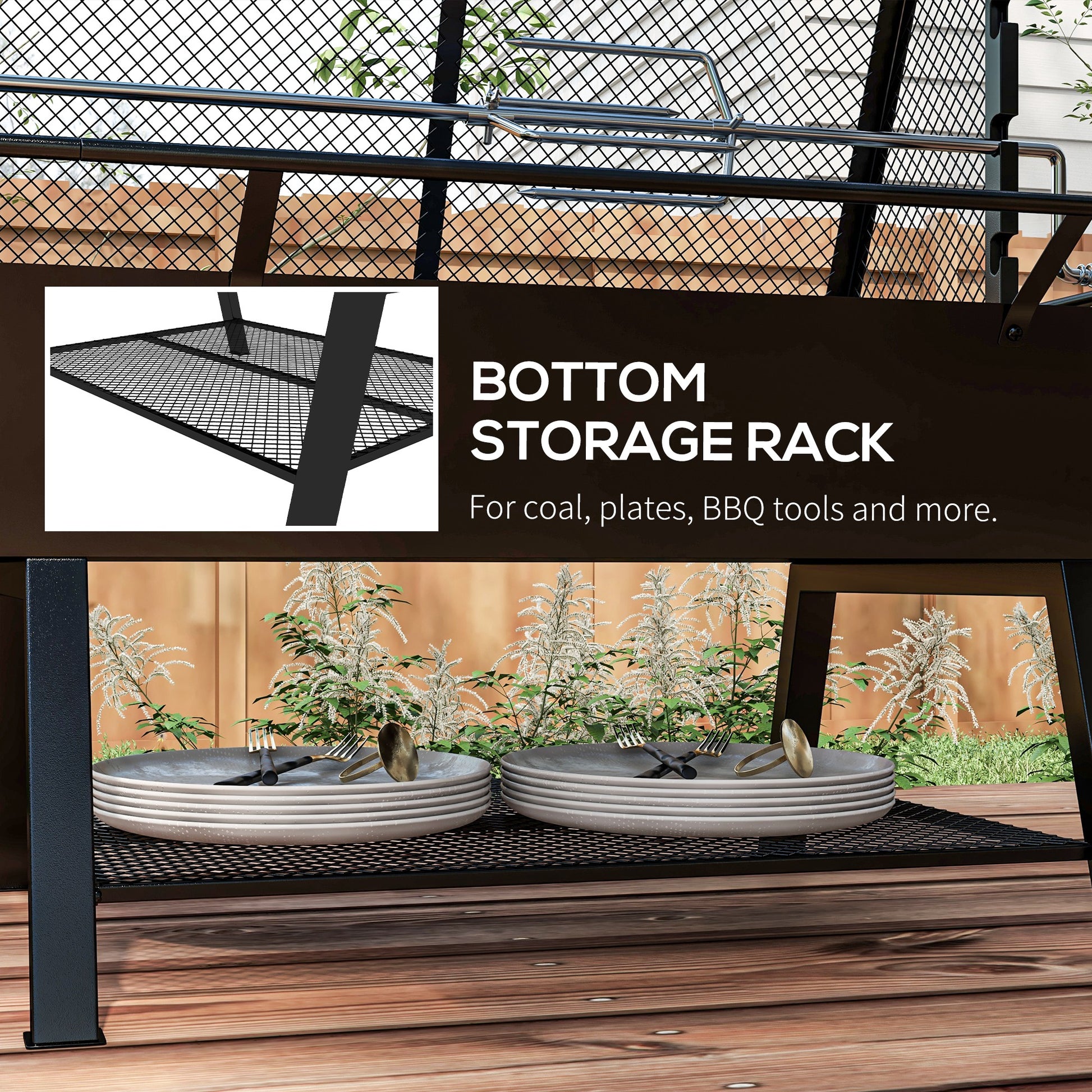 Outsunny 3-in-1 Charcoal Barbecue Grill, Rotisserie Roaster, Fire Pit with Storage Shelf and Mesh Lid