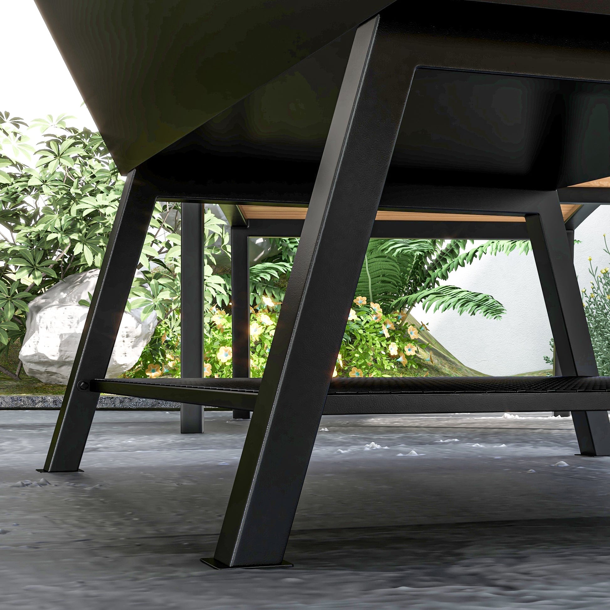 Combining a fire pit, grill, and rotisserie in one, Outsunny charcoal grill allows you to enjoy the warmth of a fire, master the art of grilling, and roast mouthwatering chicken, lamb leg, and pork. Easily adjust the rotisserie height to control the smokiness of your meat. With a mesh lid that prevents sparks and debris from flying out. The bottom rack keeps your coal, plates and BBQ tools within reach. A great addition to your summertime parties, BBQs, picnics and more.