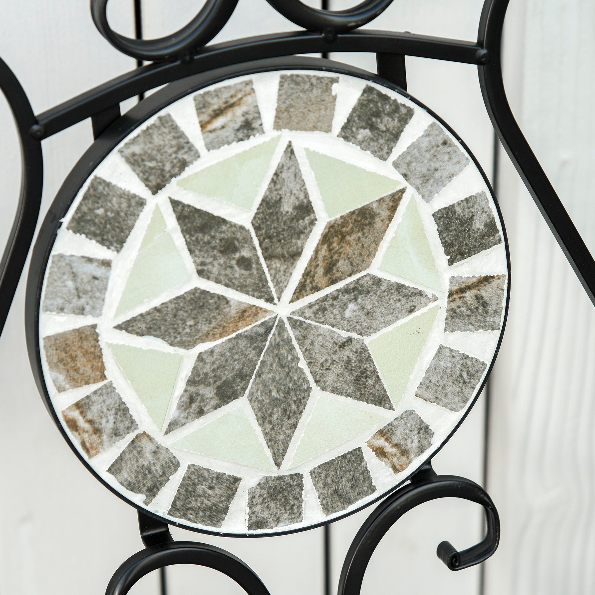 Outsunny 3 Pcs Mosaic Tile Garden Bistro Set Outdoor Seating w/ Table 2 Folding Chairs Set Metal Frame Elegant Scrolling Indoor Patio Balcony