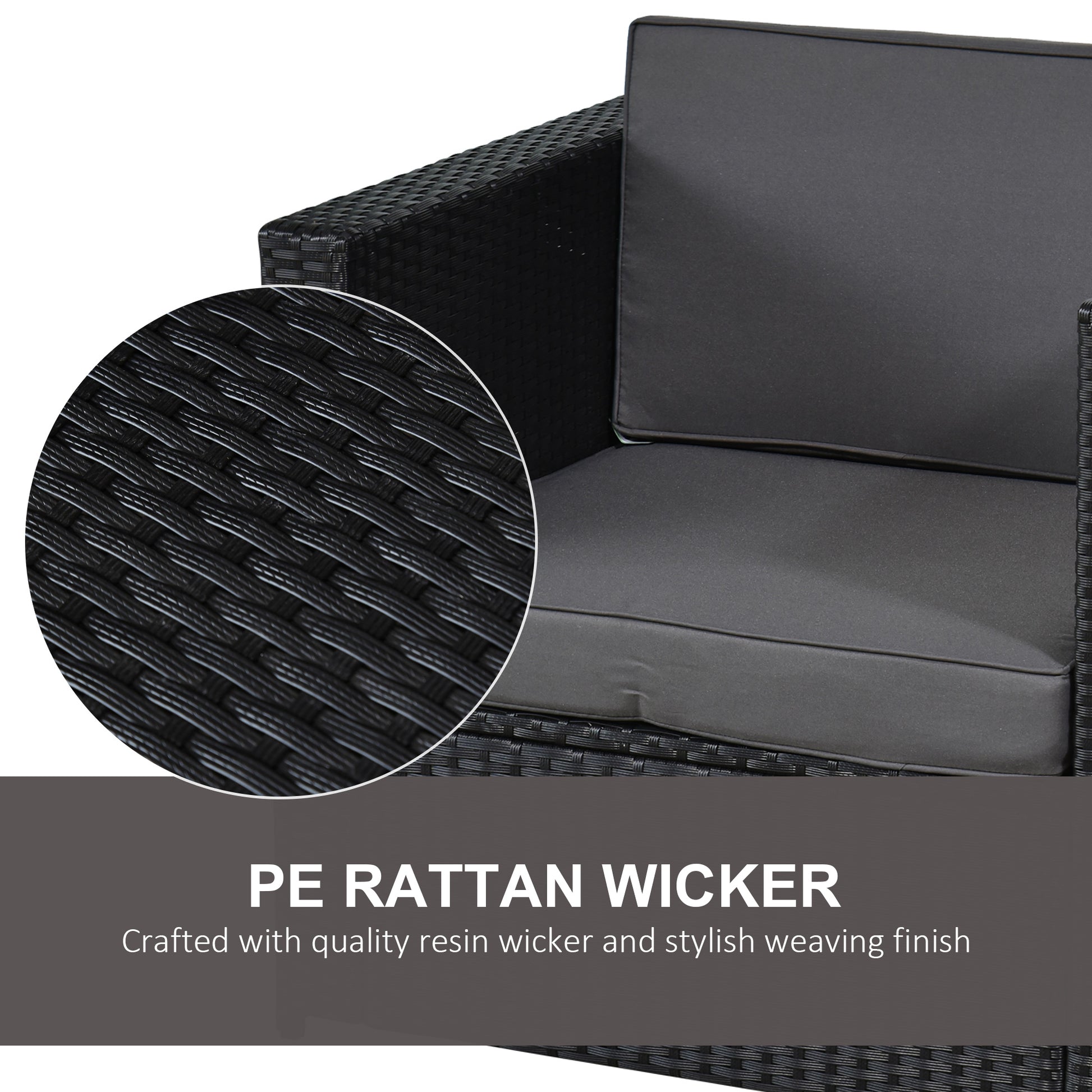 Outsunny 3 Piece PE Rattan Garden Furniture Patio Bistro Set Weave Conservatory Sofa Table and Chairs Set Black
