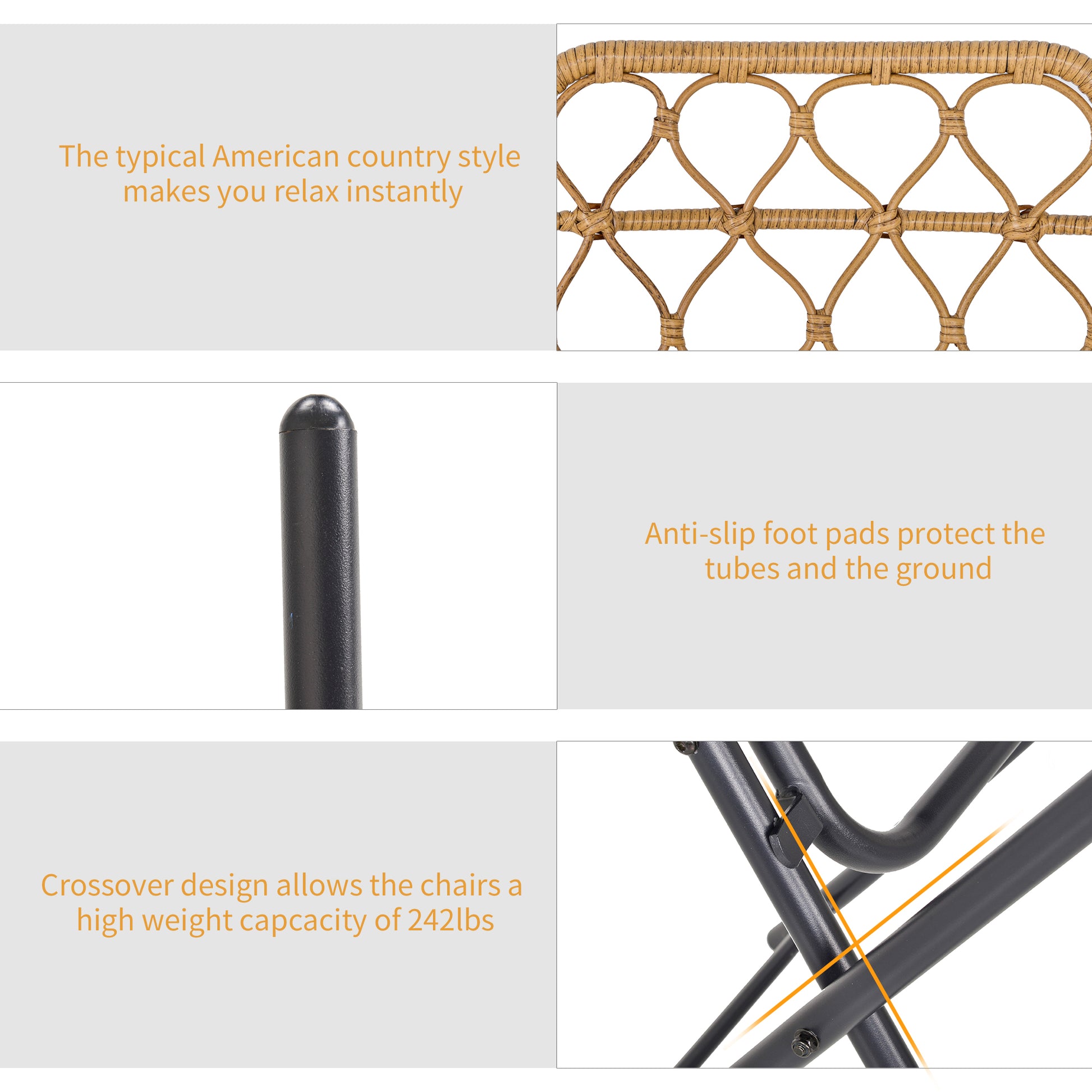 Outsunny 3 pcs PE Rattan Wicker Bistro Set Conversation Patio Furniture Set w/ Foldable Coffee Table and Chairs and Steel Frame, Natural