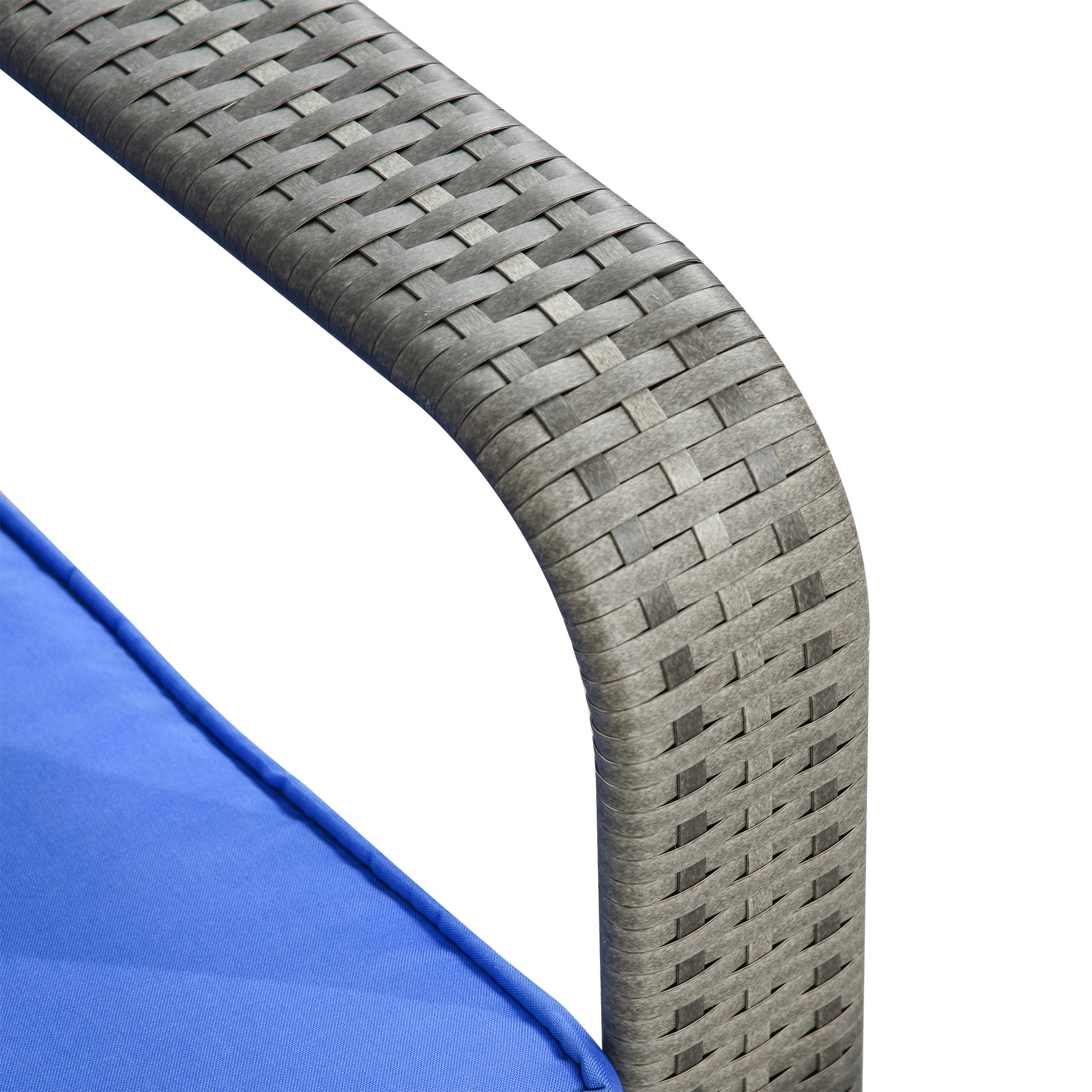 Outsunny 3 pcs PE Rattan Wicker Garden Furniture Patio Bistro Set Weave Conservatory Sofa Storage Table and Chairs Set Blue Cushion Grey Wicker