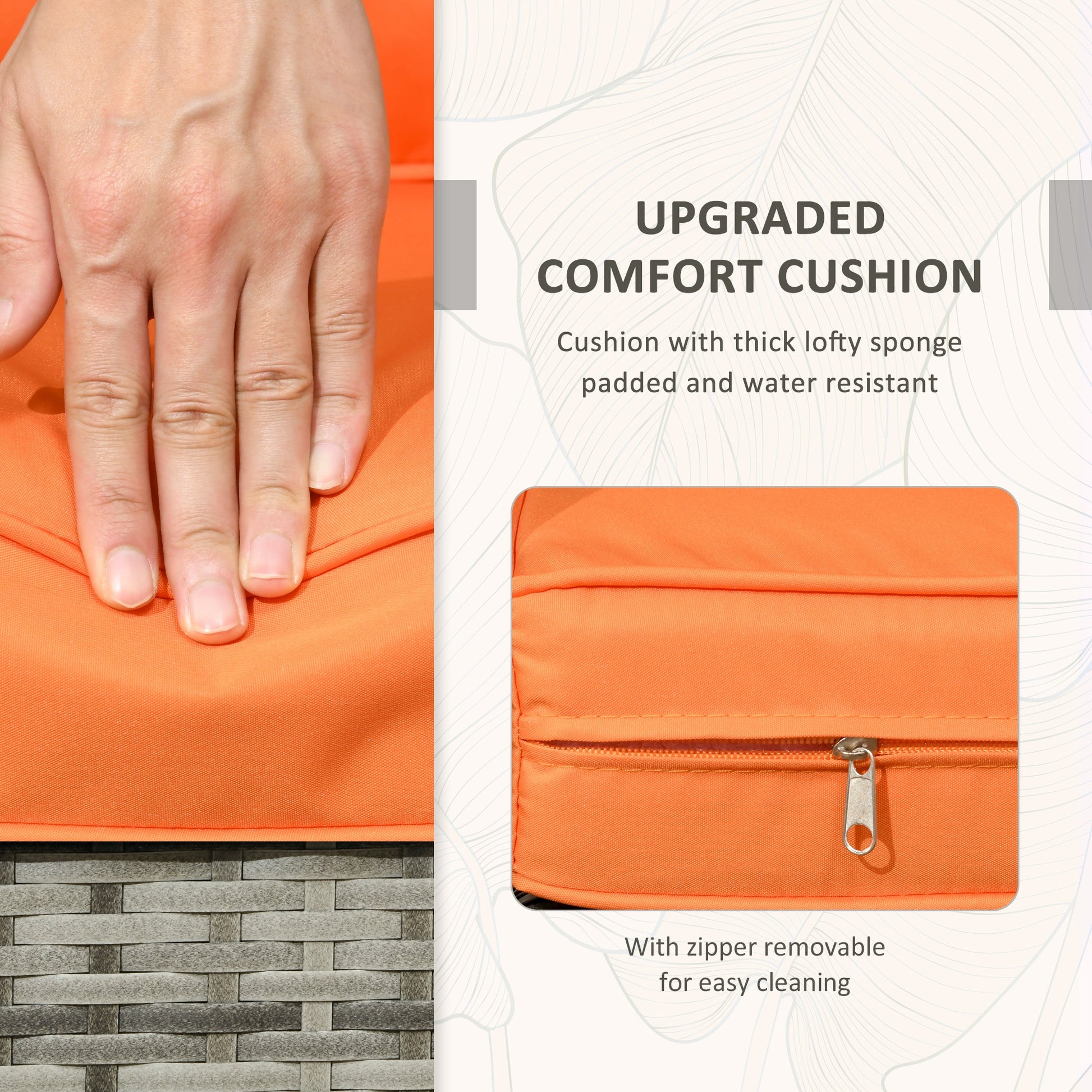 Outsunny 3 pcs PE Rattan Wicker Garden Furniture Patio Bistro Set Weave Conservatory Sofa Storage Table and Chairs Set Orange Cushion, Mixed Grey