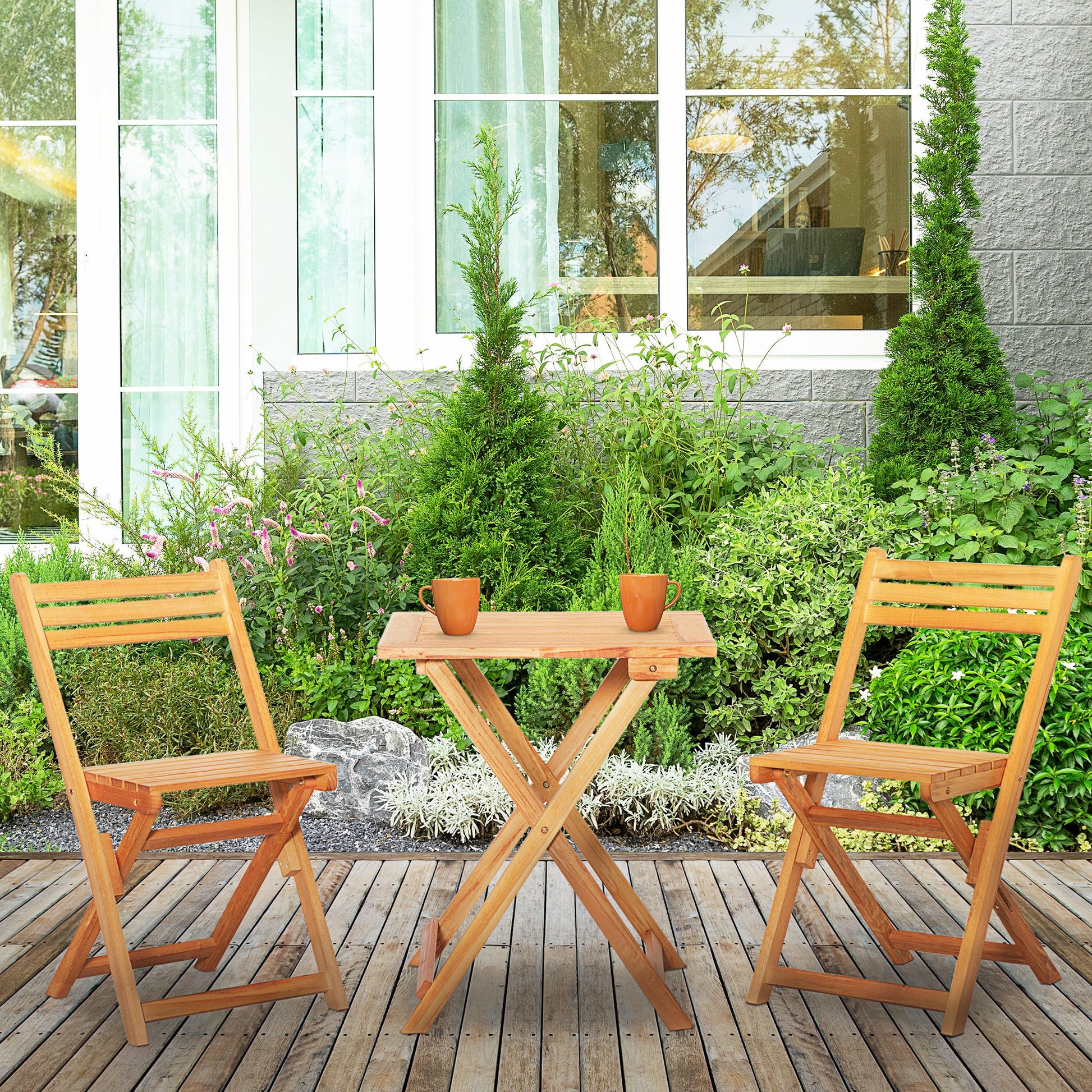 Outsunny 3 Piece Garden Bistro Set, Folding Outdoor Chairs and Table Set, Wooden Patio Dining Furniture for Poolside, Balcony, Teak