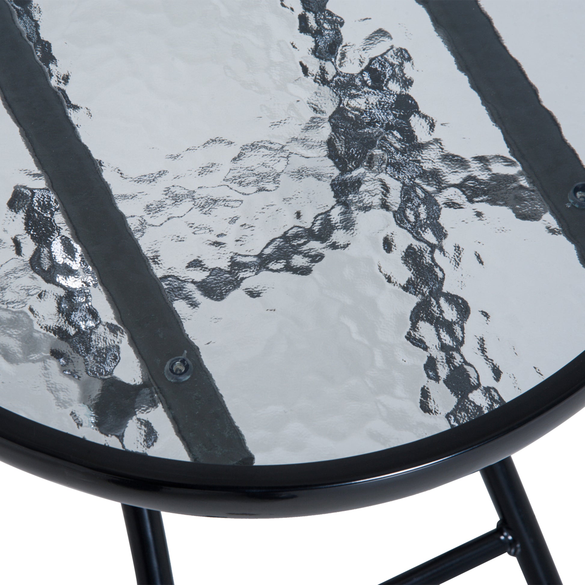 Rock yourself to relaxation with this three-piece set from Outsunny. The two chairs, their frames made from steel for strength, are formed into a rocking design - move forwards and backwards gently to relax. The fabric seat holds your body, the elastic cords connected to the frame supports. Top pillow keeps your head and neck comfortable. The matching round table is fitted with a glass table top - a sleek addition and a safe holding place.