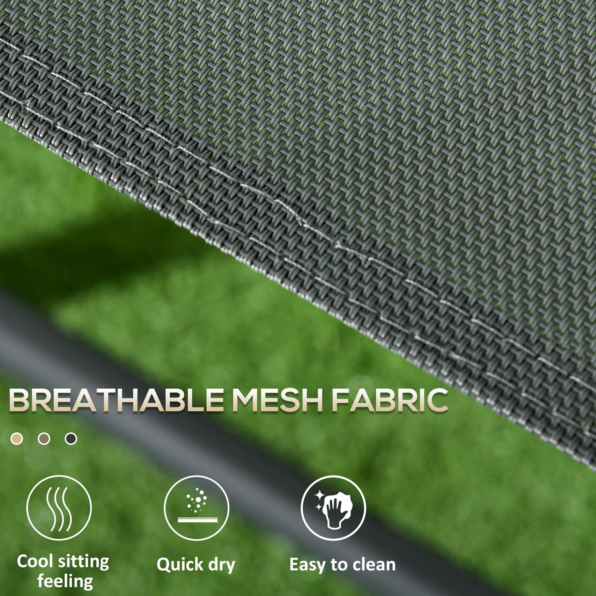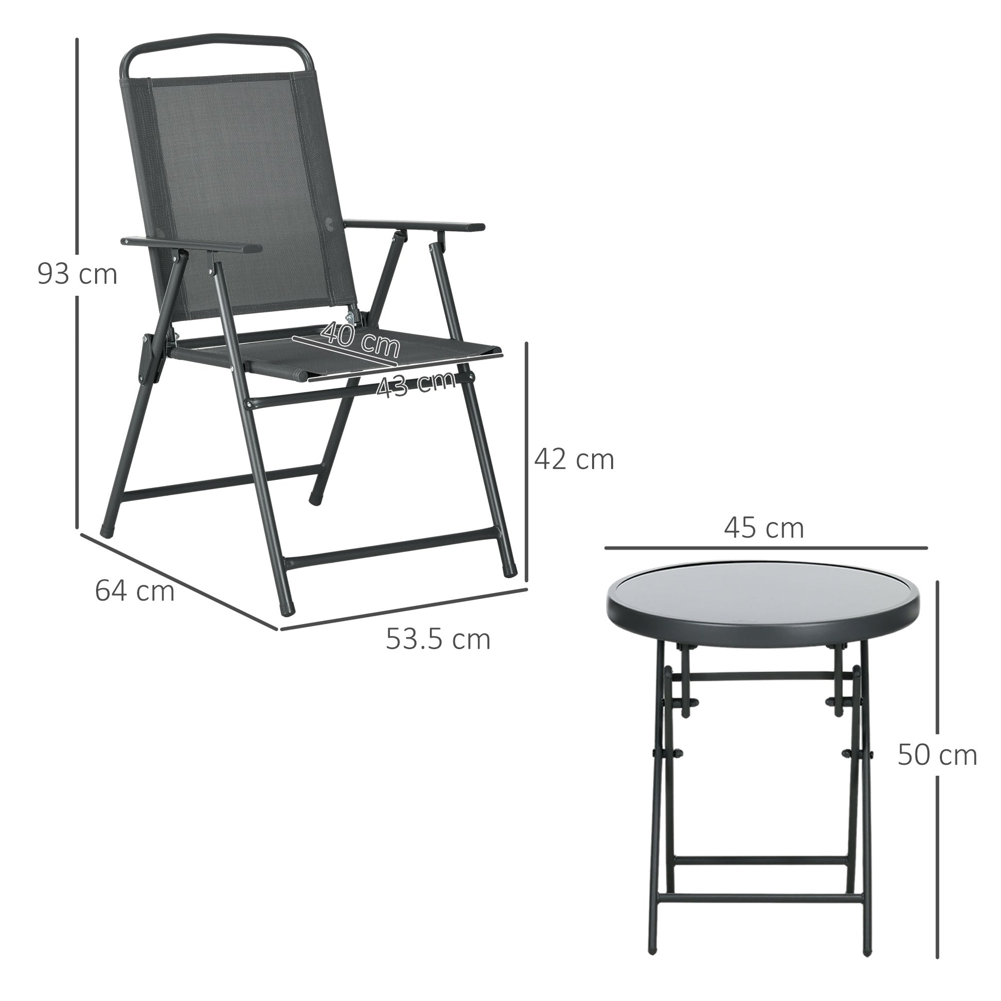Outsunny 3 Pieces Garden Table and Chairs, Outdoor Bistro Set, Patio Conversation Furniture Set with Foldable Breathable Mesh Fabric Armchairs & Glass Top Coffee Table, Dark Grey