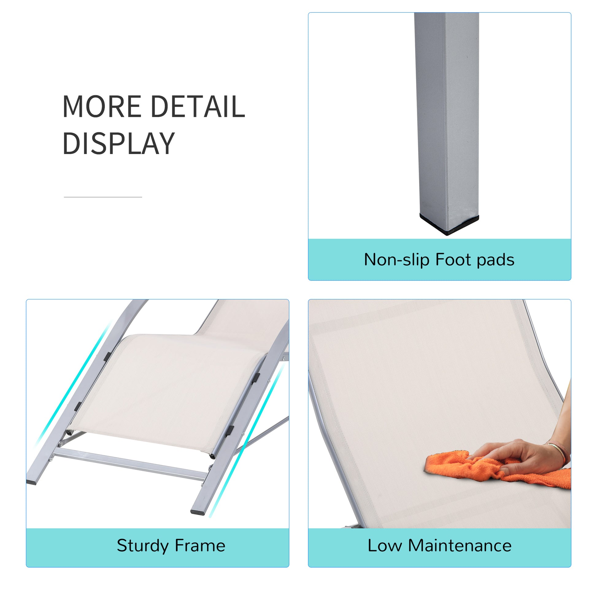 Outsunny 3 Piece Lounge Chair Set Metal Frame Garden Outdoor Recliner Sunbathing Chair with Table, Cream