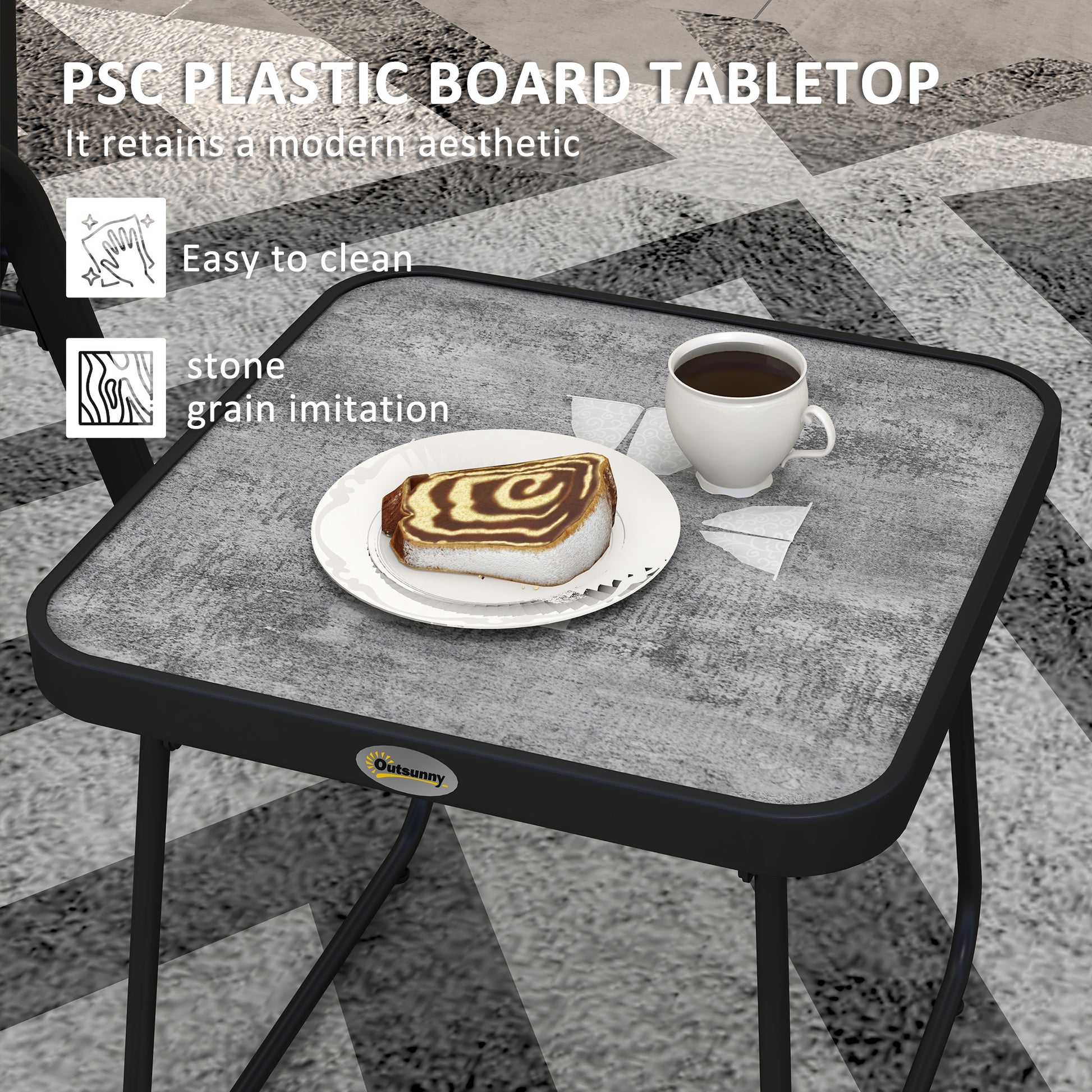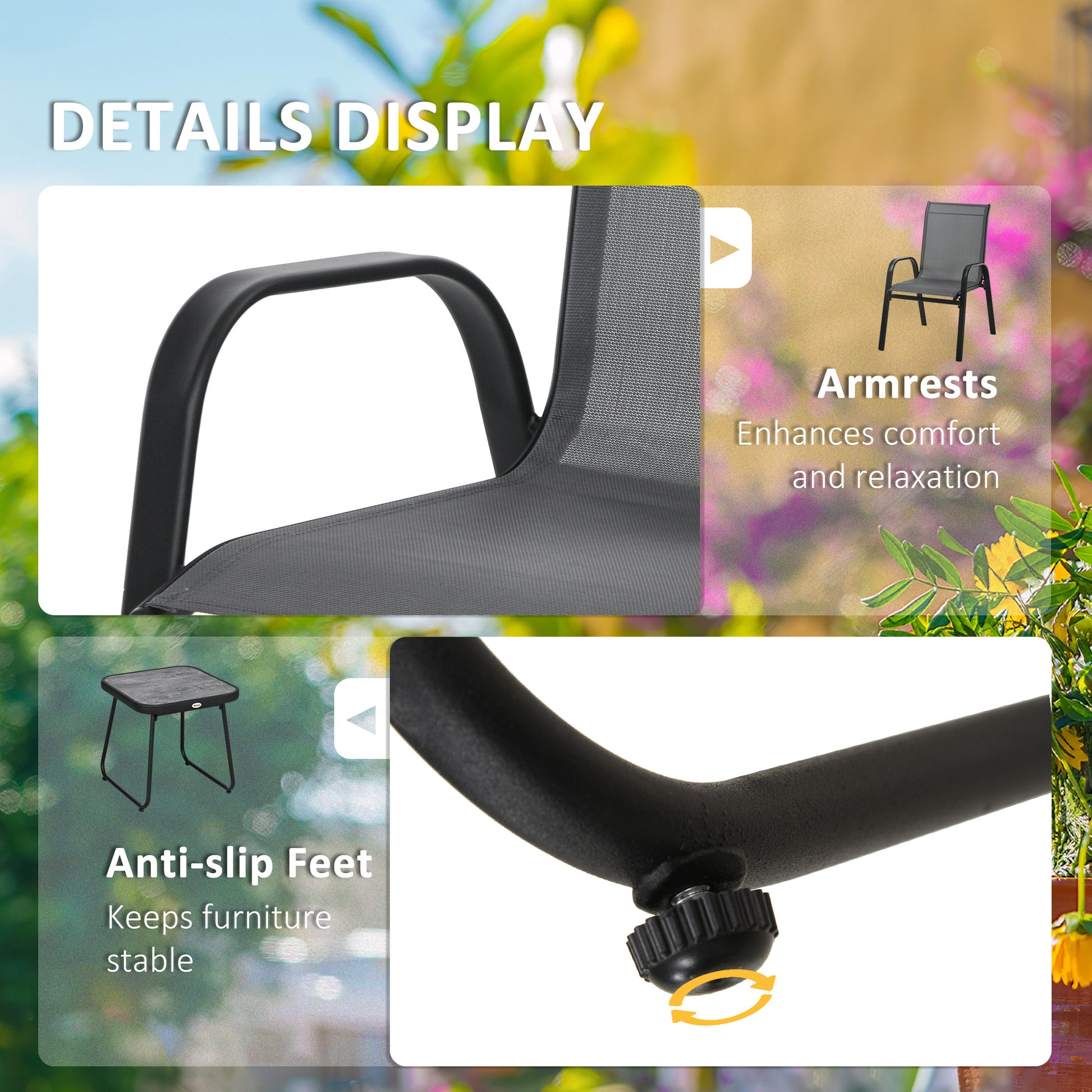 Outsunny 3 Piece Outdoor Bistro Set, Patio Stackable Armchairs with Breathable Mesh Fabric and SPC Board Coffee Table, Light Grey