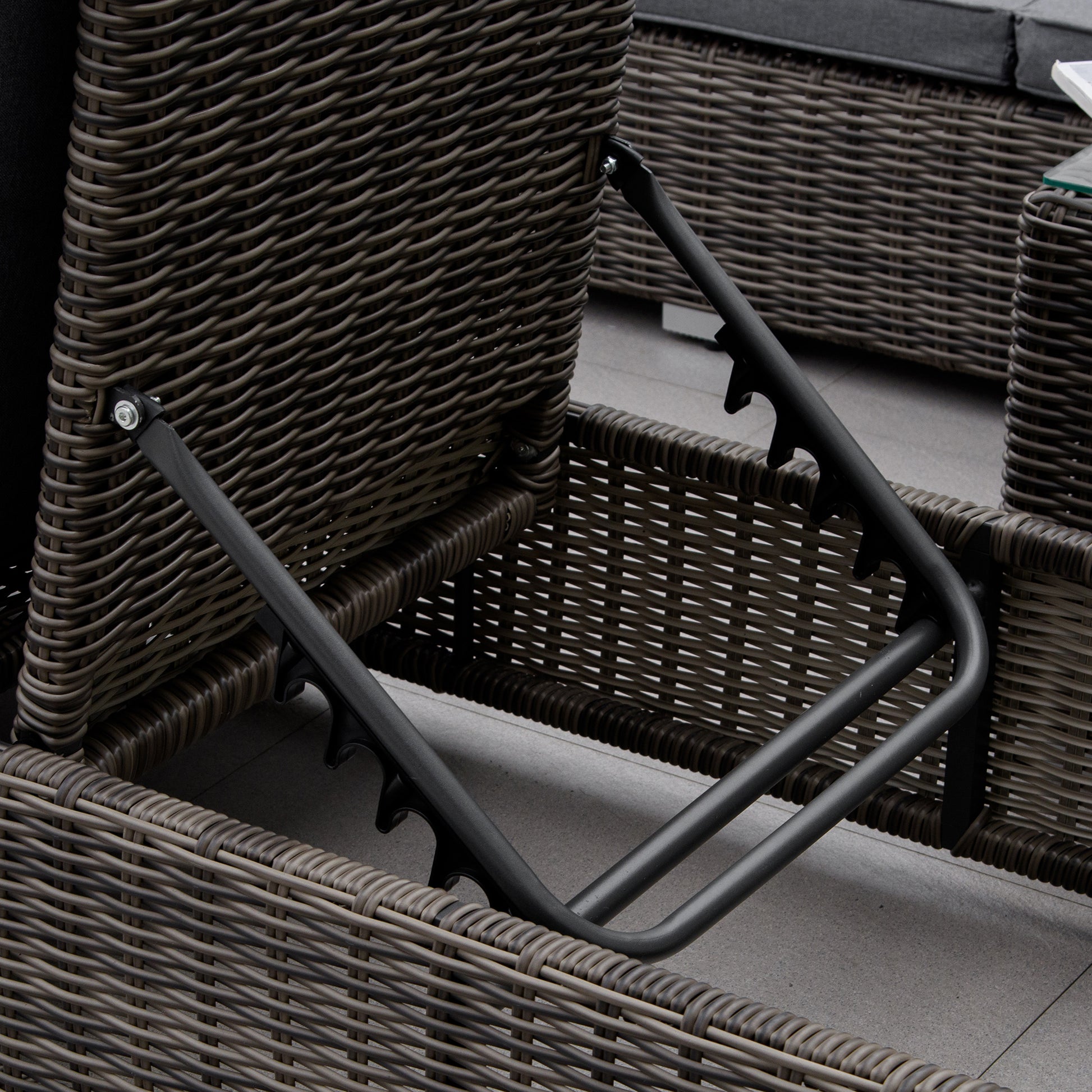 - Strong and rigid aluminium frame, wrapped in weather-resistant PE wicker rattan