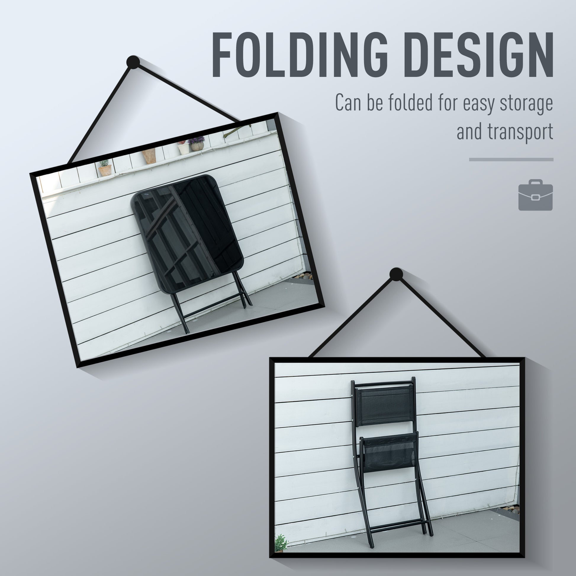 Outsunny 3 Pieces Patio Table and Chairs, Folding Patio Table and 2 Chairs, Outdoor Furniture Set for Backyard and Porch, Black