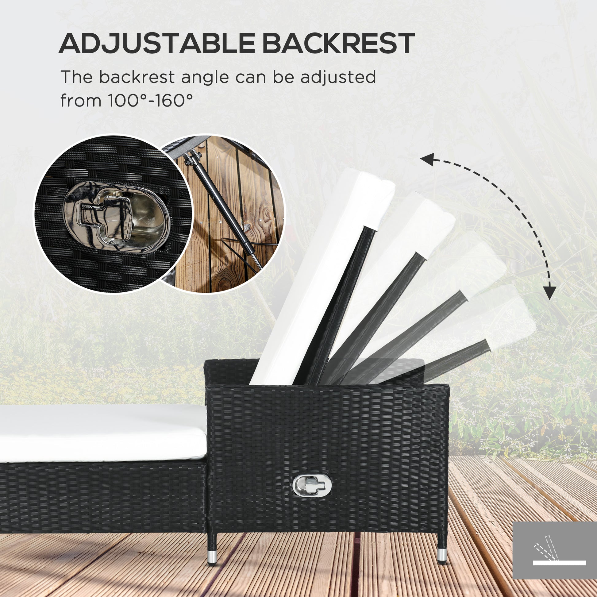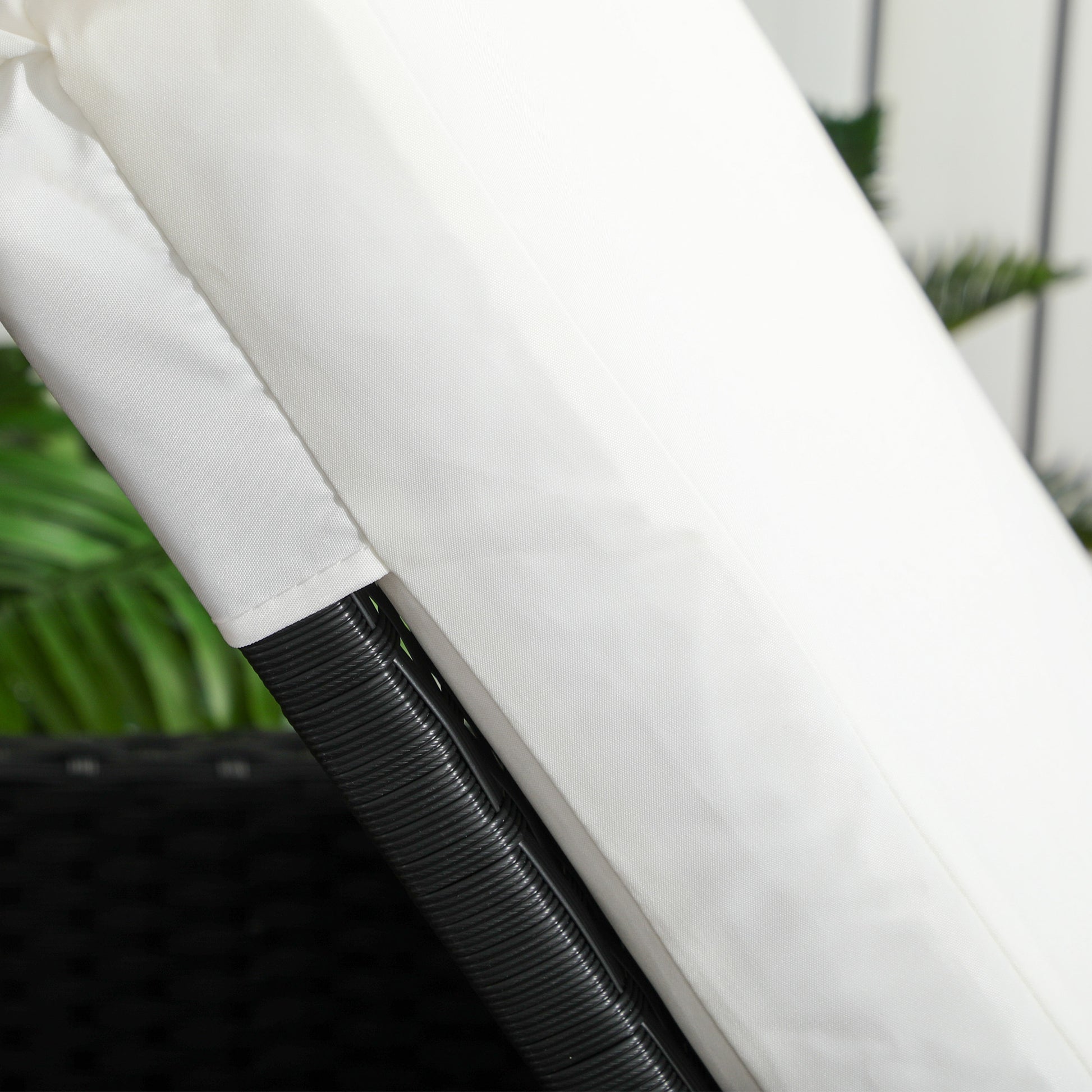Outsunny 3-Pieces Rattan Sun Lounger, Patio Chaise Lounge Chair Set with Adjustable Backrest, Soft Cushions, Glass Top Table, Cream White