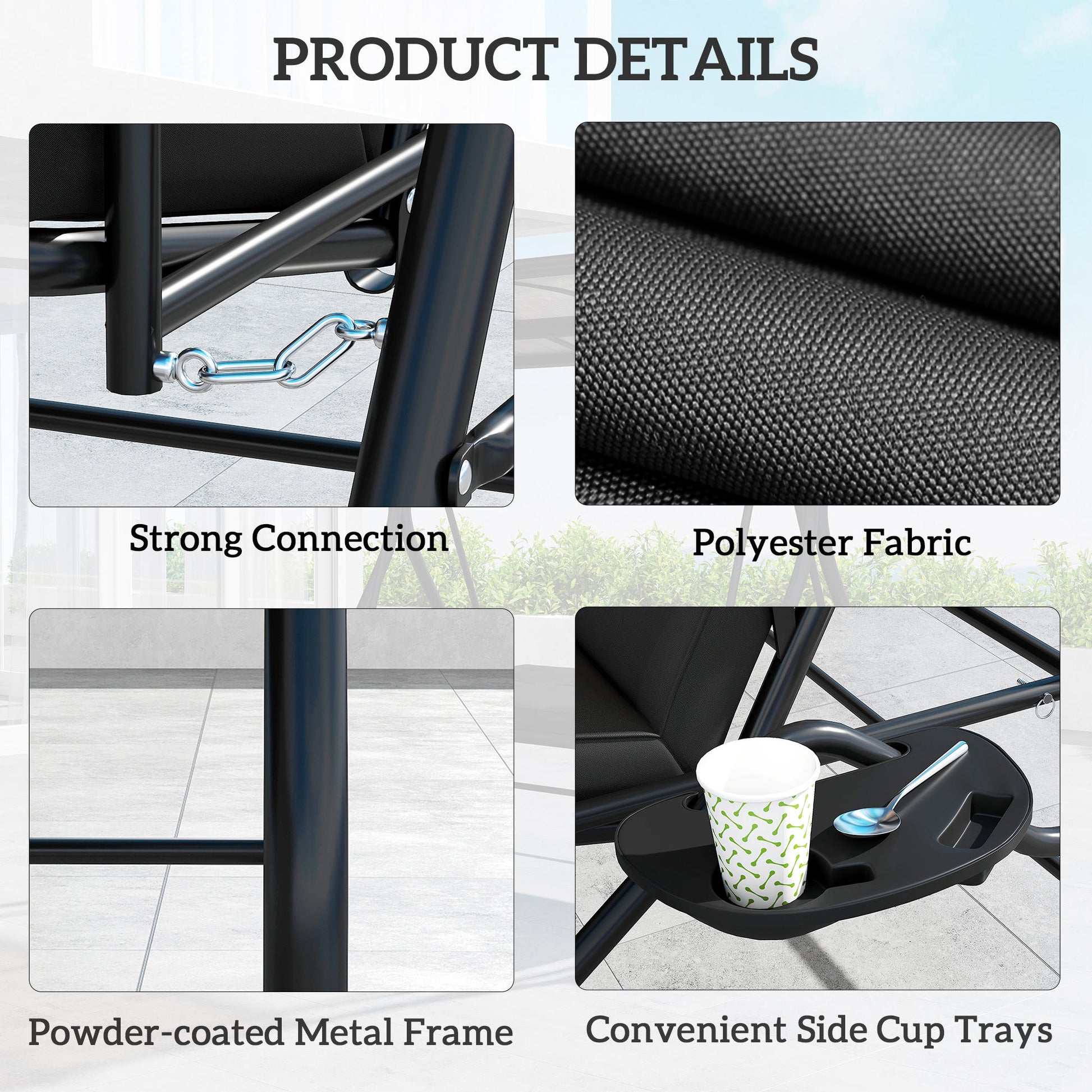 Relax in style with the Outsunny garden swing seat bed, featuring a 90-degree adjustable canopy for optimal sun protection (UPF30+). Complete with two handy side cup trays, this swing bench transforms into a comfortable flat bed, making it the optimal garden swing bed for those lazy afternoons. Enjoy the comfort of a padded seat and backrest as you sway gently in your new favourite spot.
