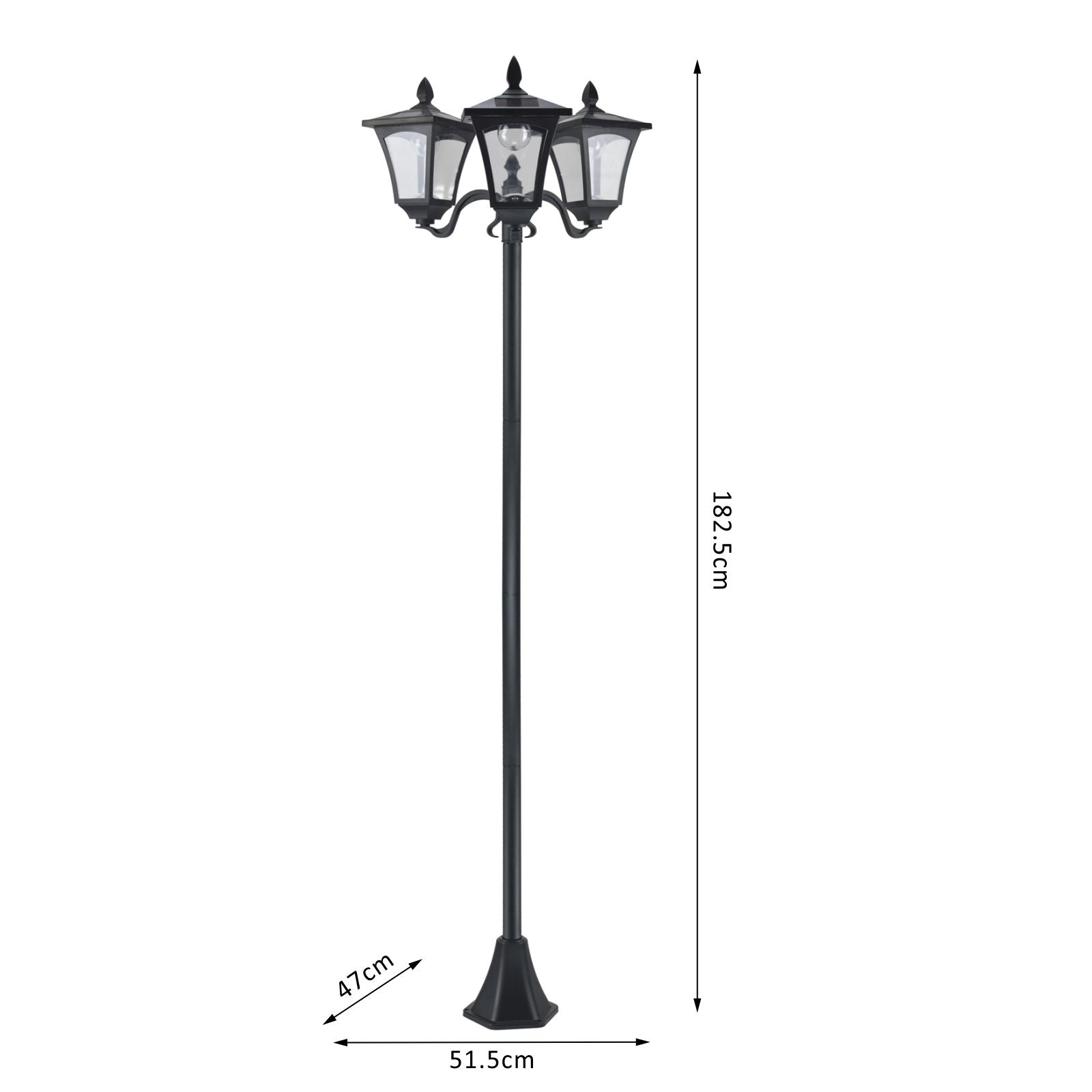 Outsunny 3-Solar Powered Lamp Post, IP44, 51.5Lx47Wx182.5H cm-Black
