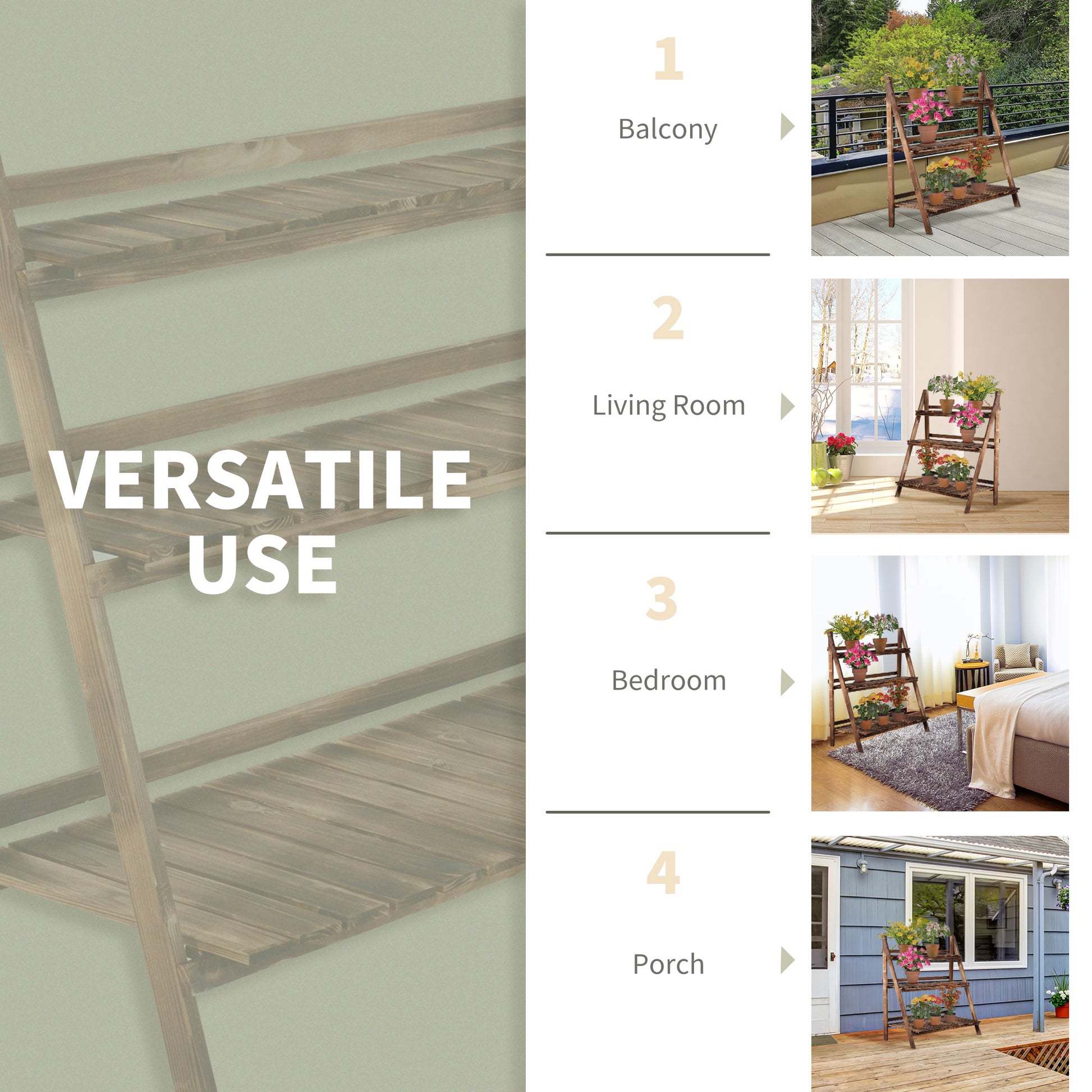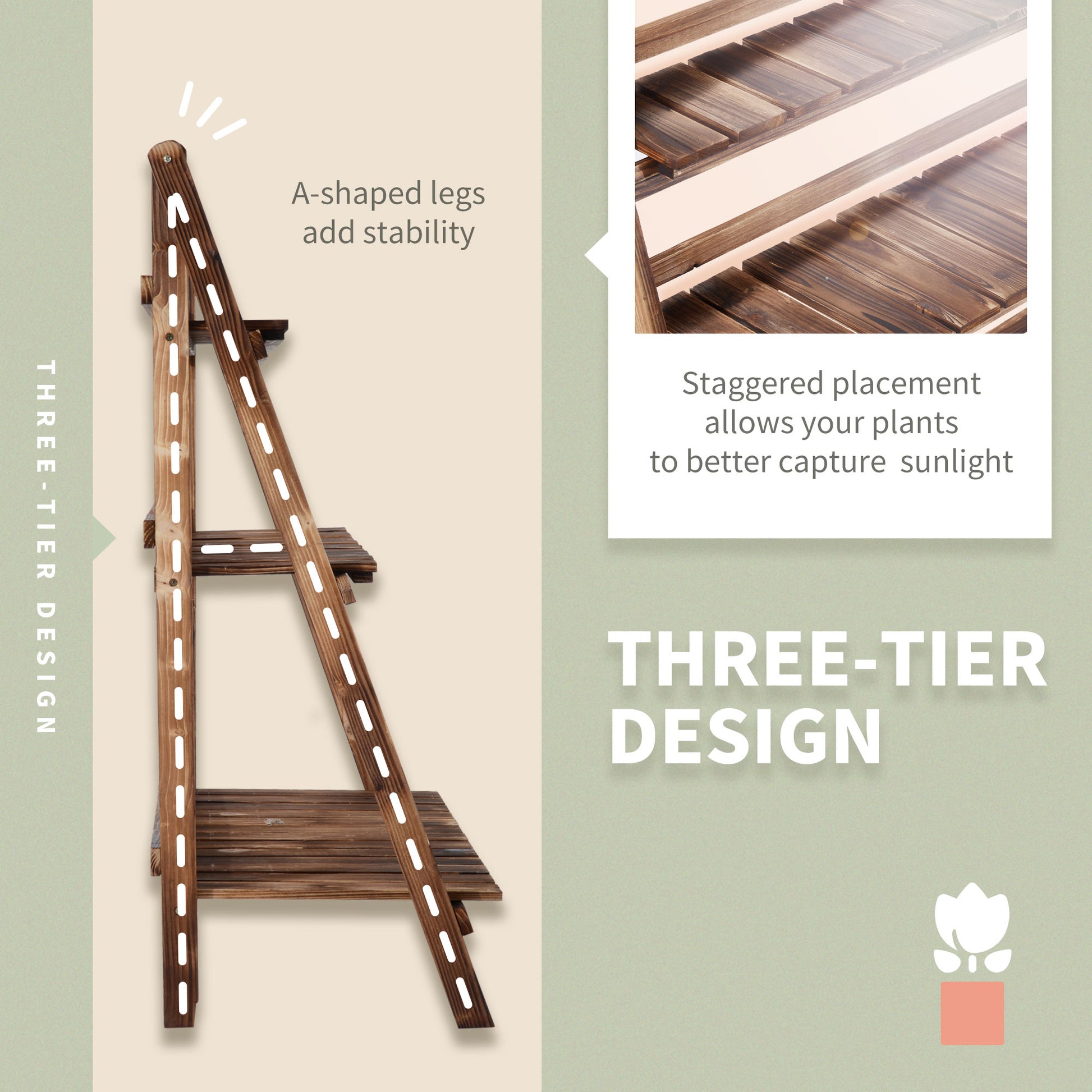 Outsunny 3 Tier Flower Stand Wood Folding Planter Ladder Display Shelf Rack for Garden Outdoor Backyard 100Lx37Wx93H(cm)