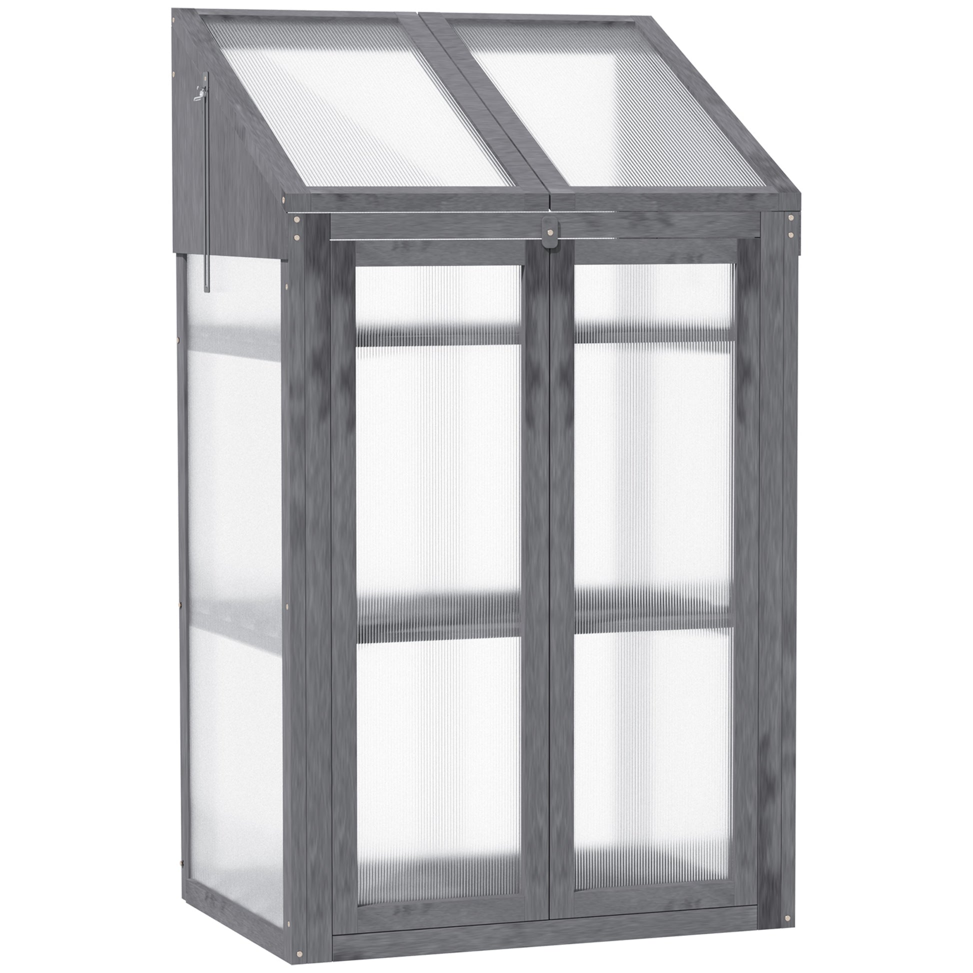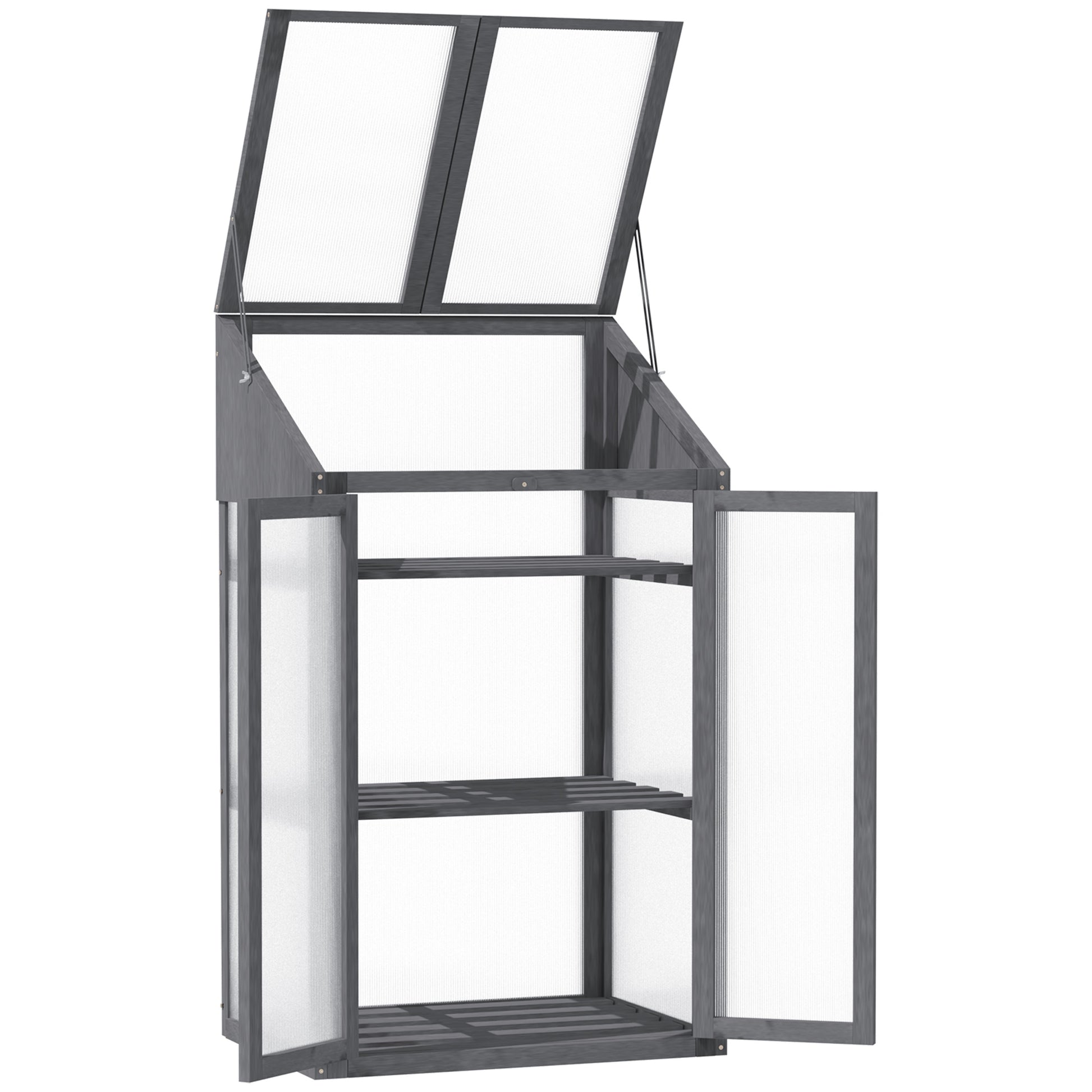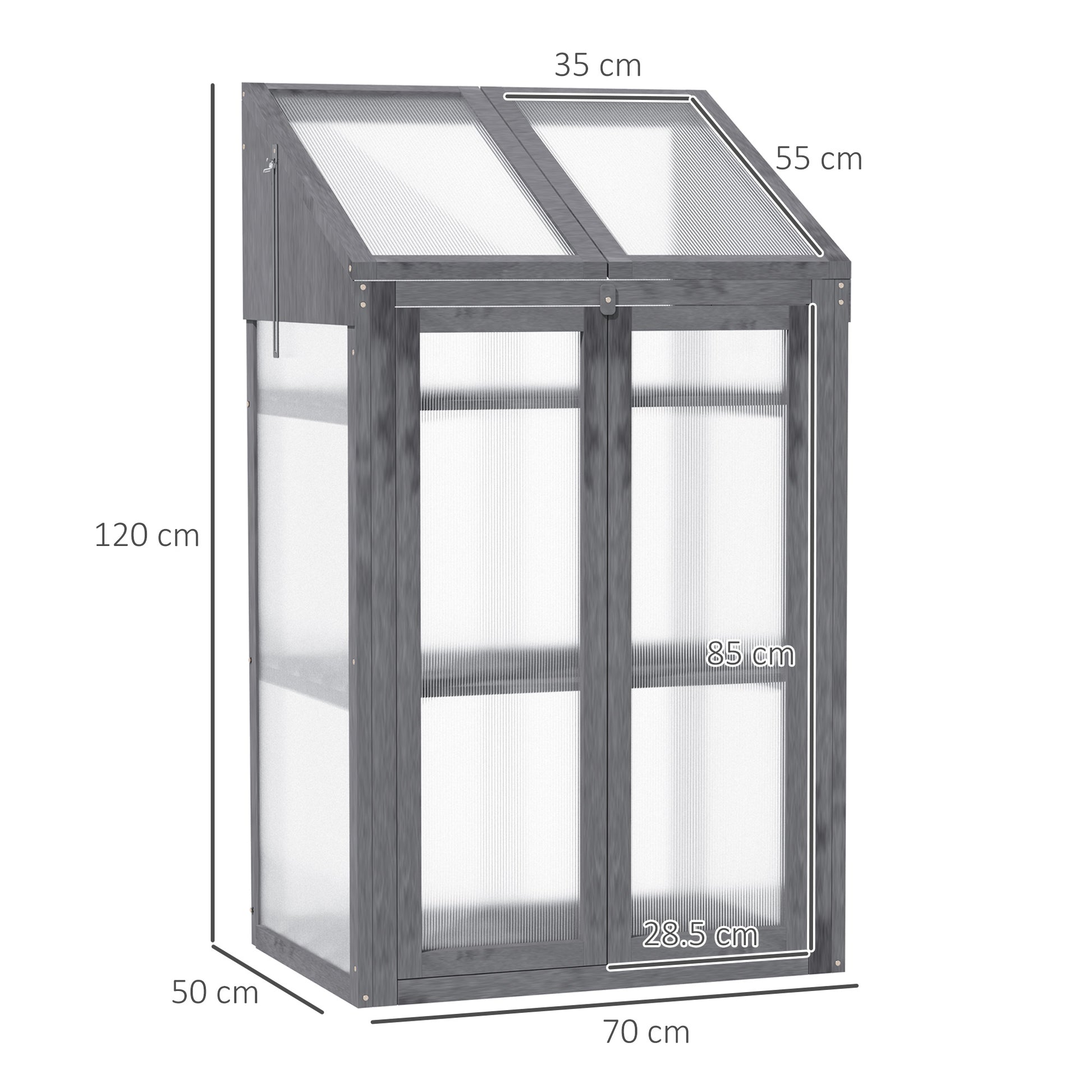 Outsunny 3-Tier Wooden Cold Frame Greenhouse Garden Grow House w/ Polycarbonate Glazing, Openable Lid, 70 x 50 x 120 cm, Grey