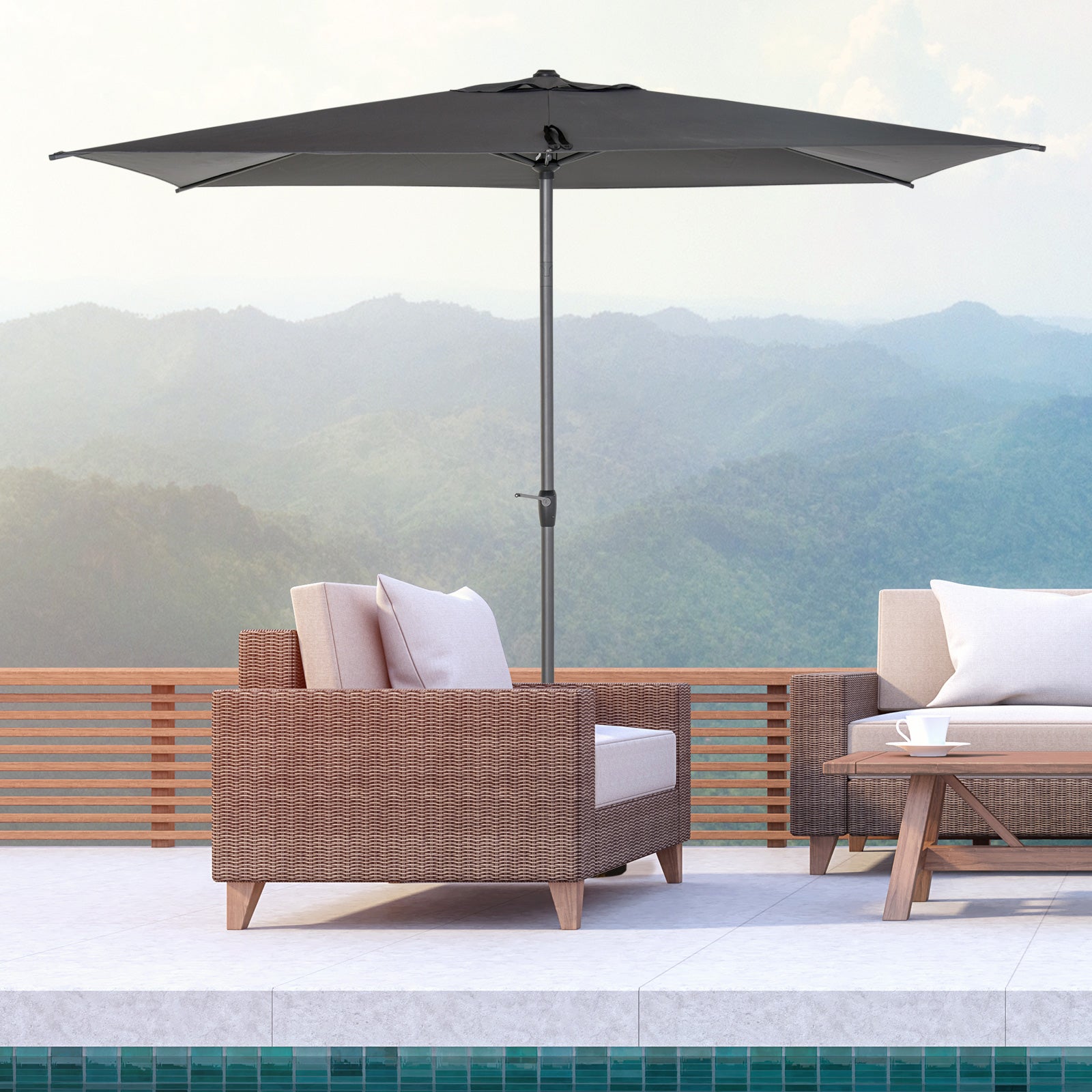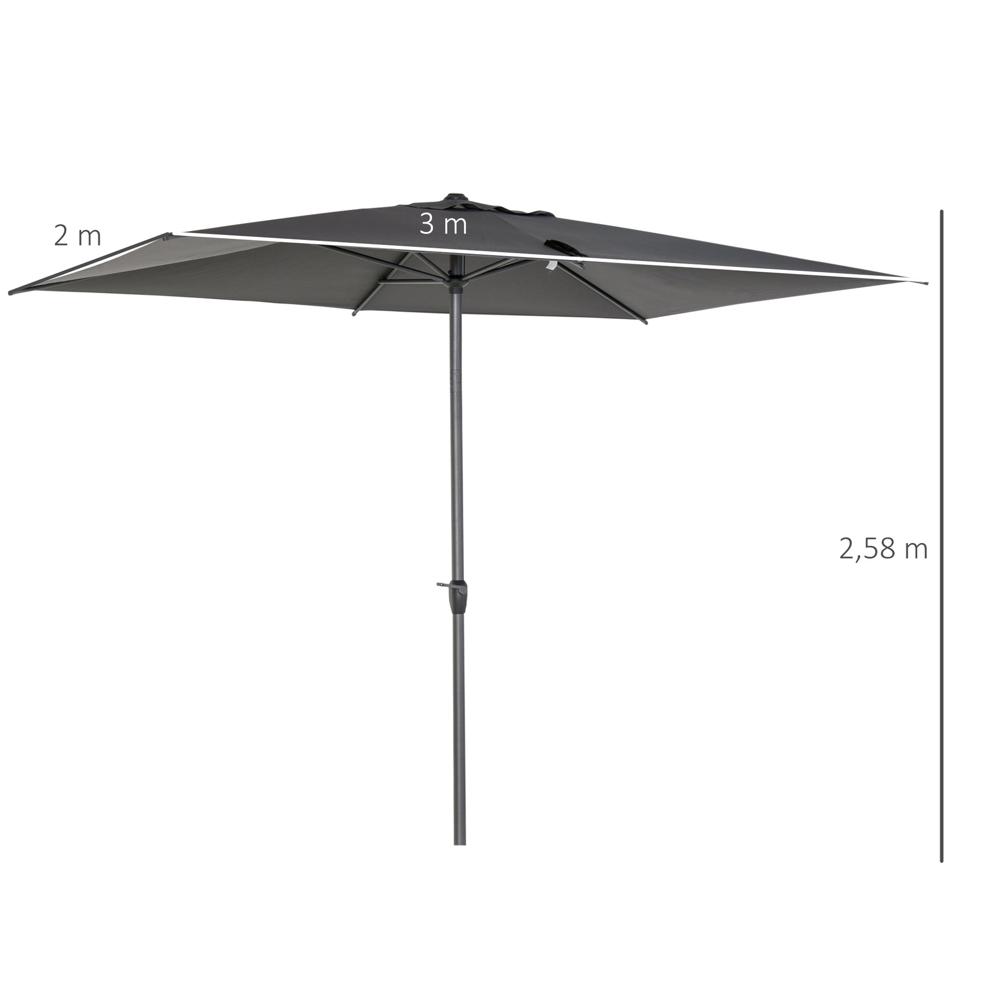 Outsunny 3 x 2m Garden Parasol Patio Sun Umbrella Canopy Rectangular Sun Shade Aluminium Crank Tilt Mechanism, Dark Grey