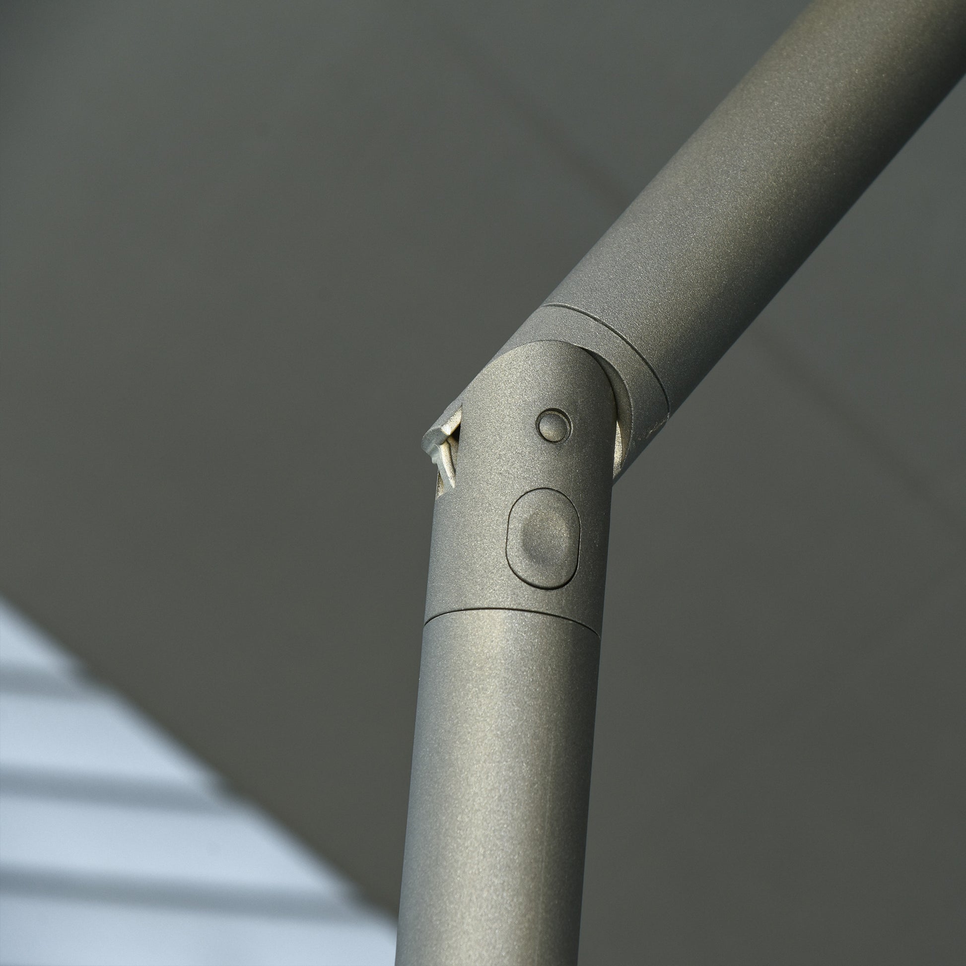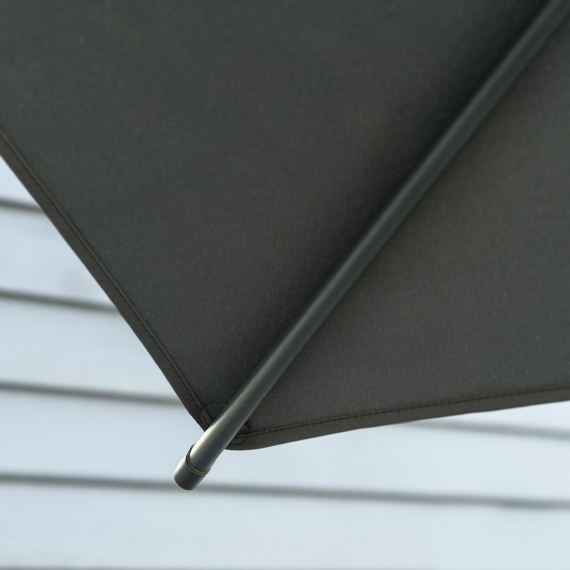Protect yourself from the sun in simple style with this outdoor parasol from Outsunny. The pole is made from aluminium, so it's durable and tough. The 180g/㎡ polyester patio parasol canopy will protect you outdoors; you can also adjust the angle at the touch of the operation button. The canopy and frame are connected with six metal ribs for extra strength and support. The perfect blend of beauty and function.