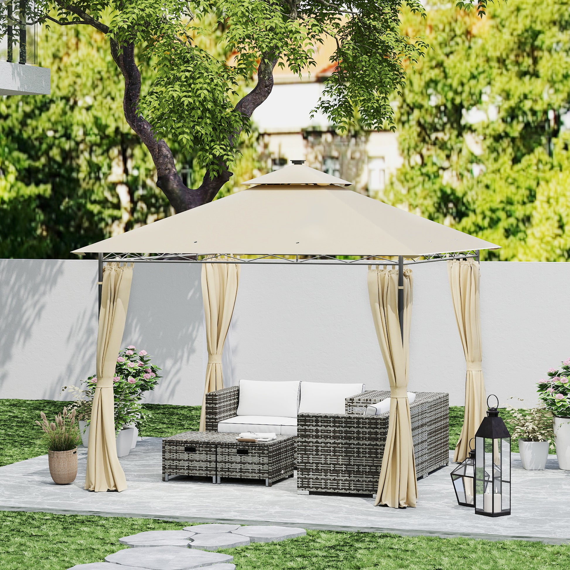 Transform your garden into a luminous haven with the Outsunny garden shelter. Its solar-powered LED lights, including a central beacon and 44 bulbs, ensure magical evenings under a starlit sky. The dual-roof design enhances airflow, while the splash-resistant polyester canopy with drainage holes keeps the rain at bay. Plus, removable curtains provide seclusion and shade, crafting the desired outdoor retreat.