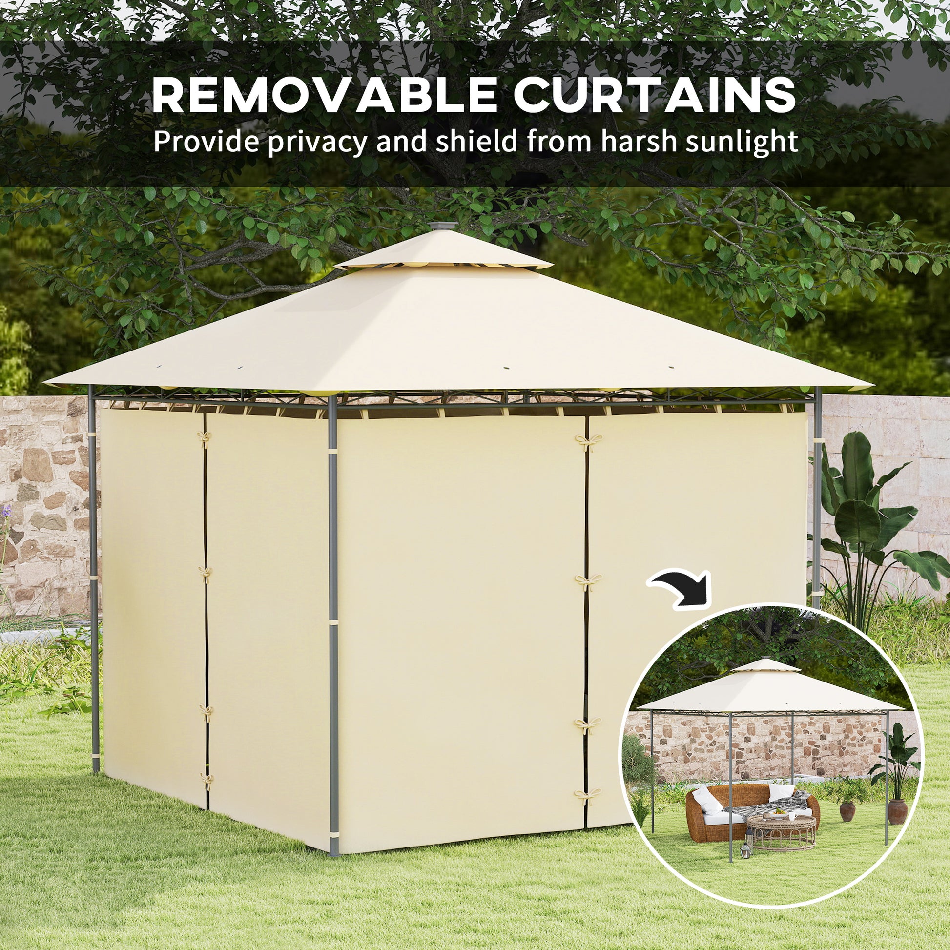 3 x 3 m Garden Gazebo, Double Roof Metal Gazebo with Curtains and Solar-Powered LED Lights, Outdoor Gazebo Canopy Shelter for Patio, Deck