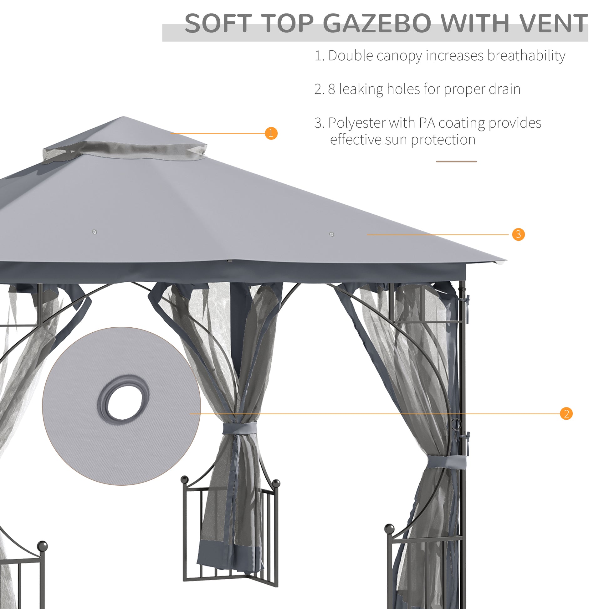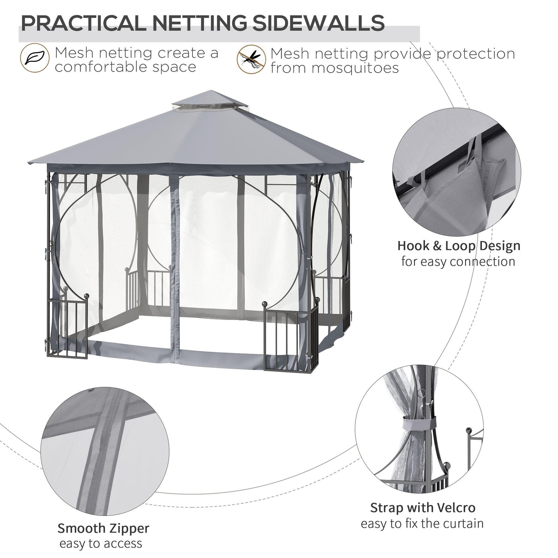 3 x 3 M Garden Gazebo Patio Party Tent Shelter Outdoor Canopy Double Tier Sun Shade Metal Frame Light Grey