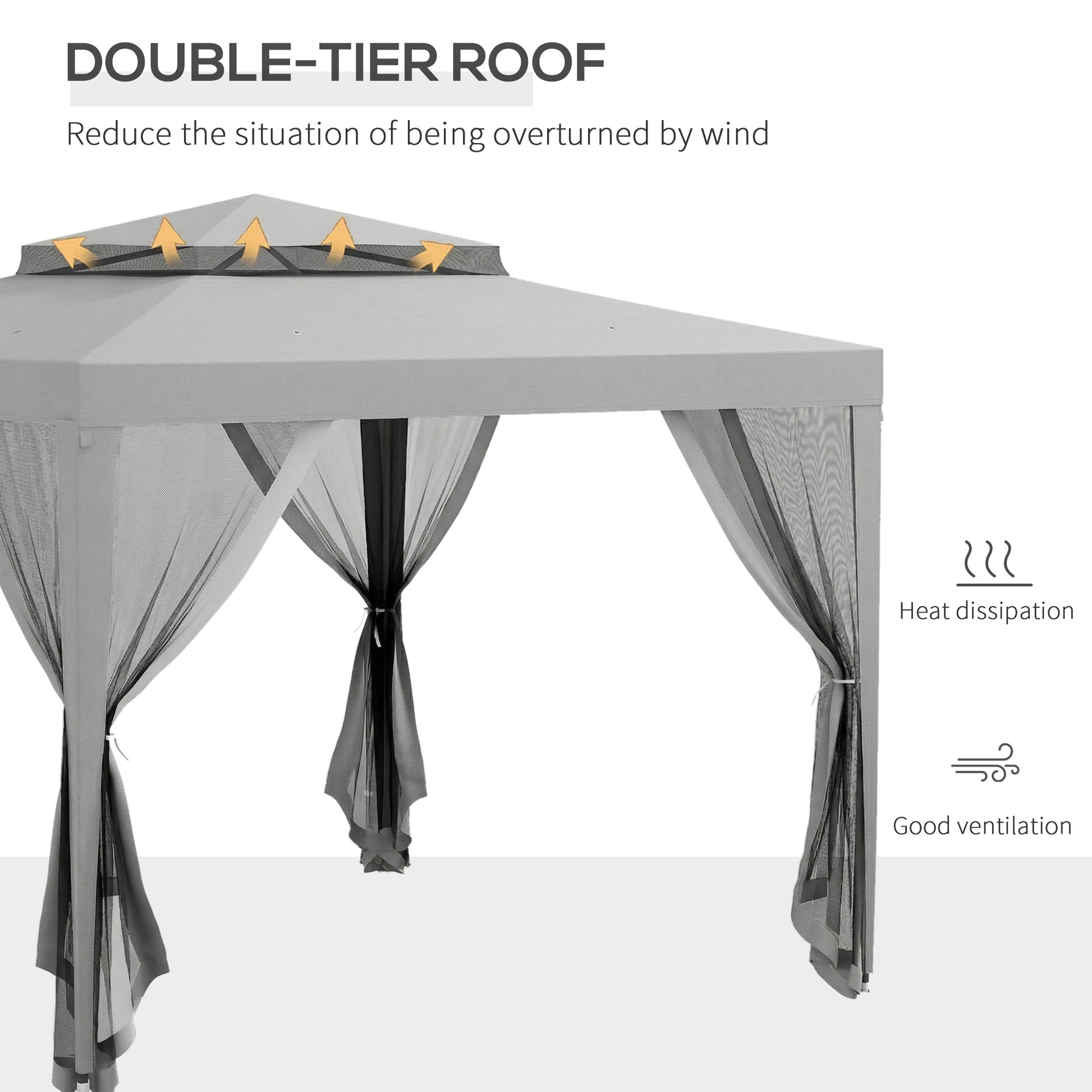 Outsunny 3 x 3 m Gazebo, Netting Party Tent, Patio Canopy Outdoor Event Shelter with Double Tier Roof
