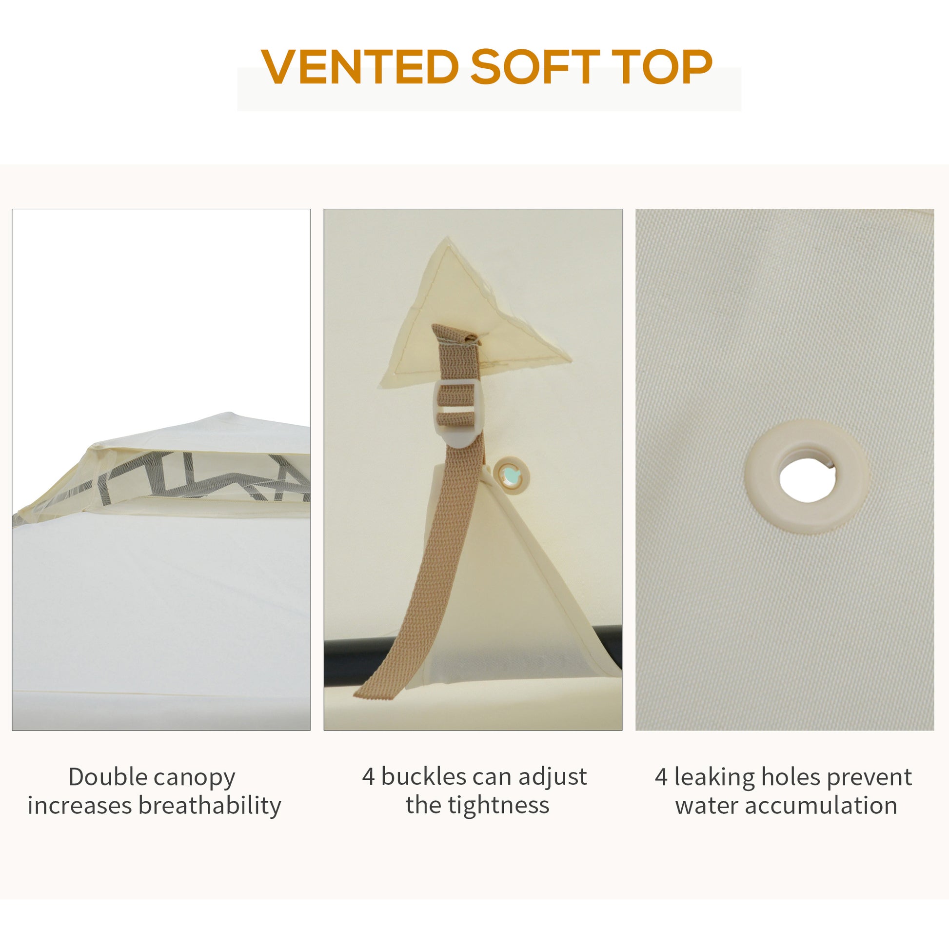 Outsunny 3 x 3 Meter Metal Gazebo Garden Outdoor 2-tier Roof Marquee Party Tent Canopy Pavillion Patio Shelter with Netting - Cream White