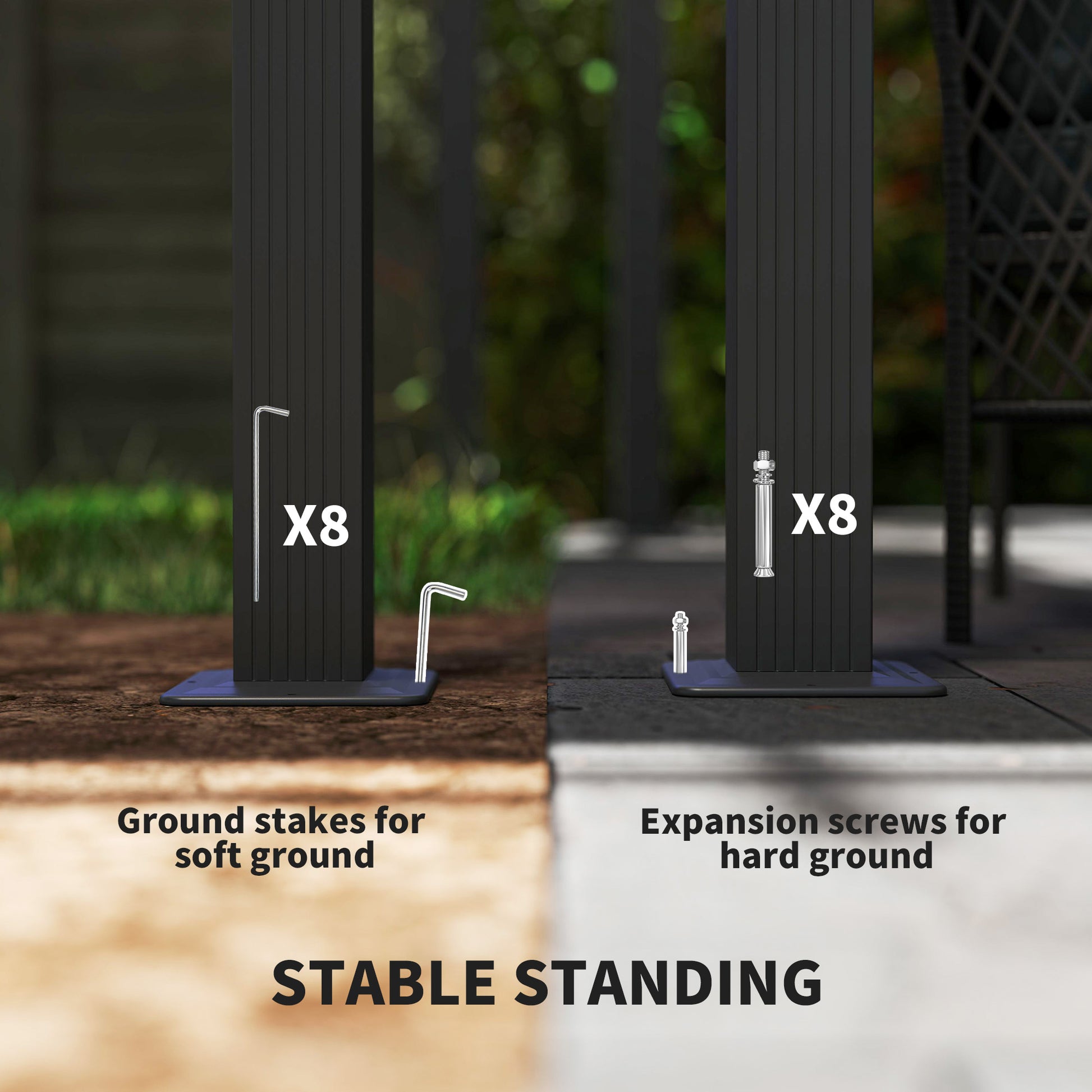 This Outsunny retractable pergola allows you to be in control - enjoy the sunshine or relax in the shade. Move the fabric roof panel to a position of your choice, letting you be fully in control. The aluminium structure is strong, with ground stakes and expansion screws included to attach to the floor. Grommet holes on the fabric for easy water drainage. Enjoy your outdoor space more than ever before.