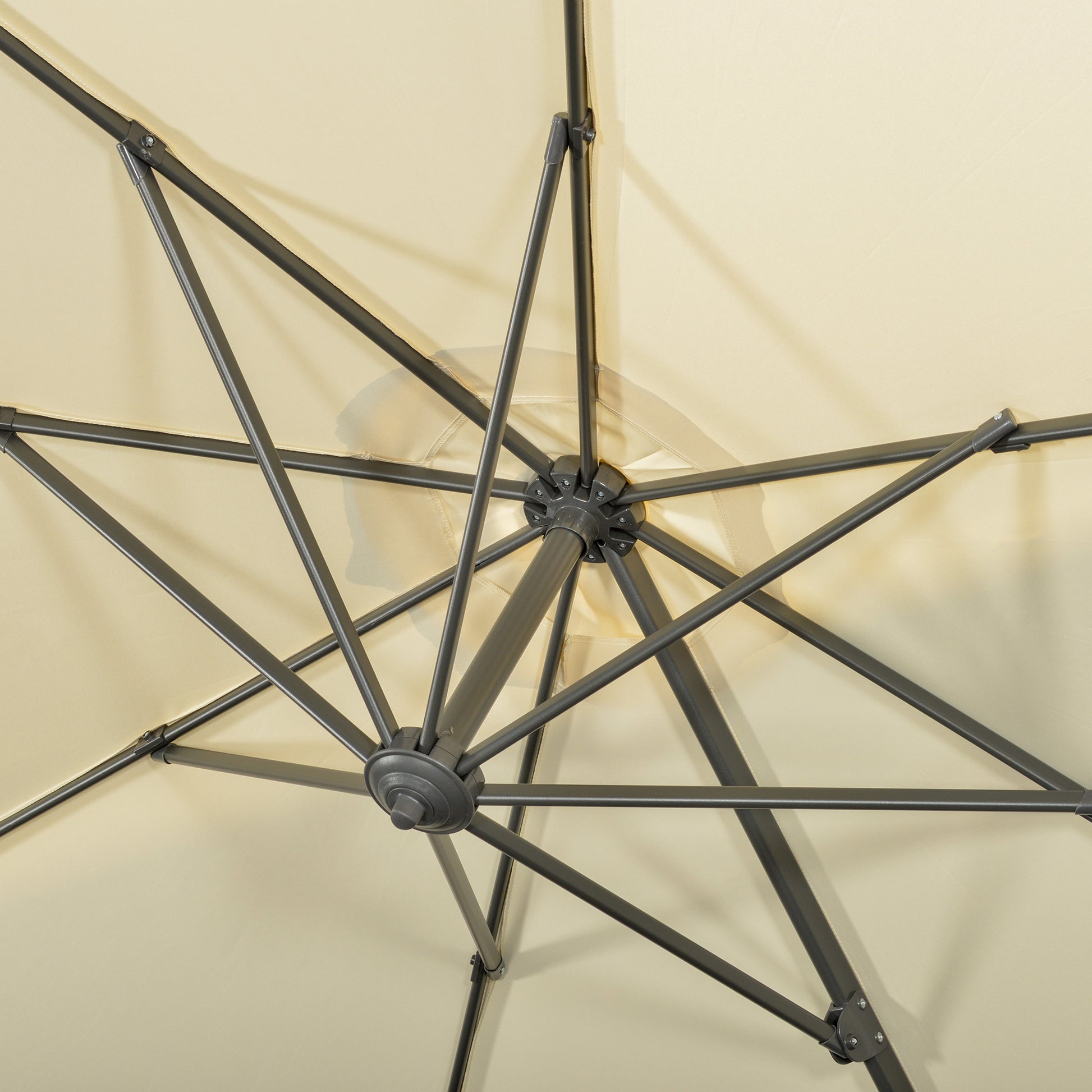 Outsunny 3 x 3(m) Cantilever Parasol with Cross Base, Garden Umbrella with 360° Rotation, Crank Handle and Tilt for Outdoor, Patio, Cream White