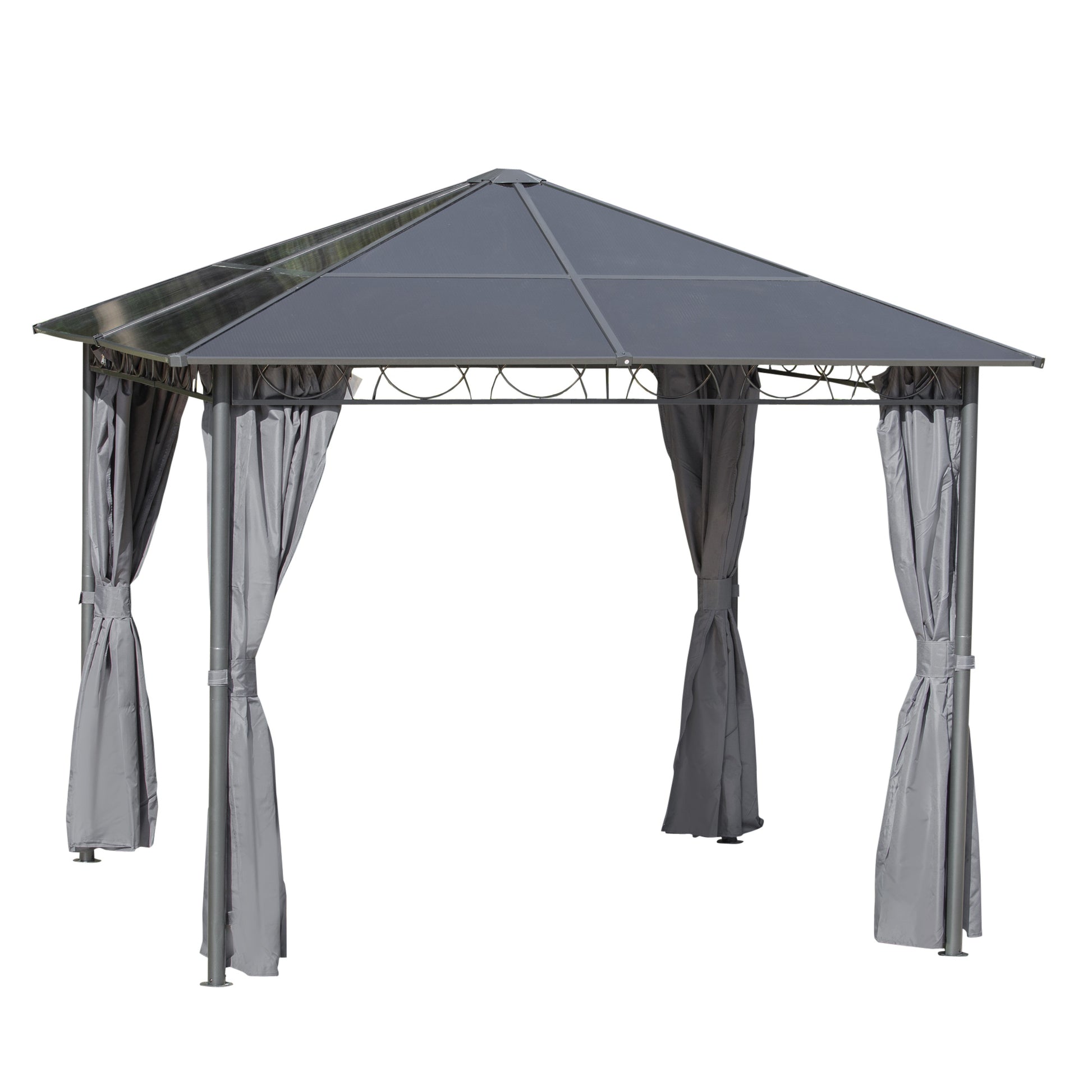 Outsunny 3 x 3(m) Hardtop Gazebo with UV Resistant Polycarbonate Roof, Steel & Aluminum Frame, Garden Pavilion with Curtains, Grey