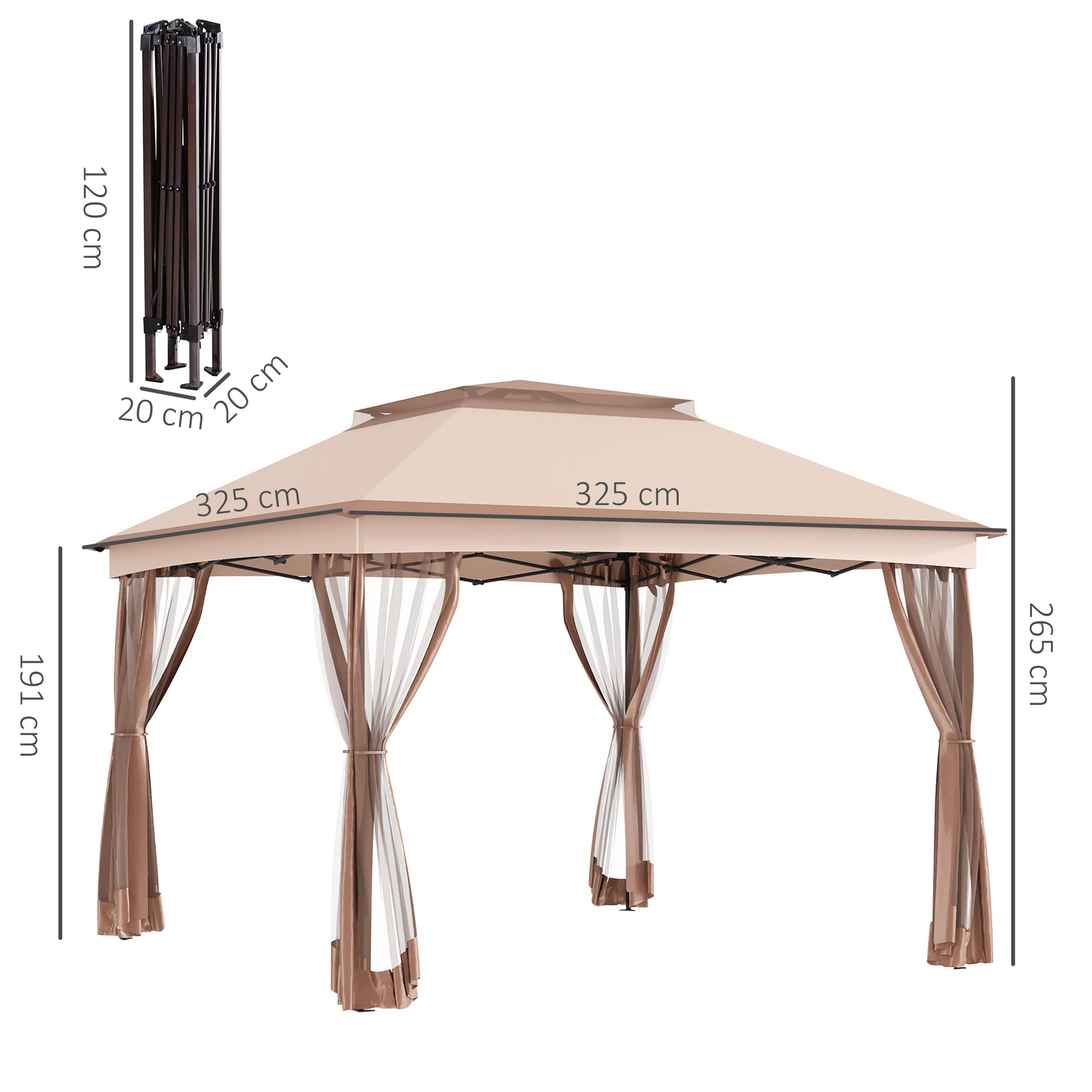 Outsunny 3 X 3(m) Meters Metal Gazebo Party Canopy Garden Pop Up Tent Outdoor Sun Shelter w/ Net Curtain Zipper Door - Khaki