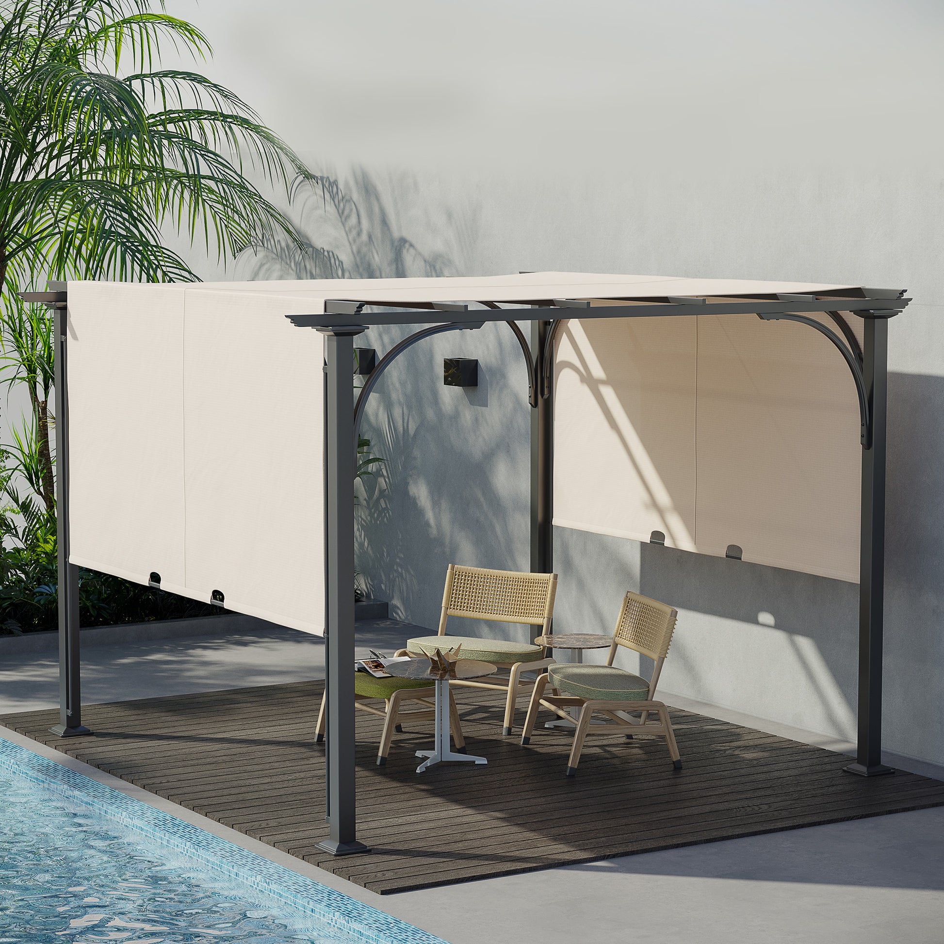 Outsunny 3 x 3(m) Outdoor Retractable Pergola, Garden Pergola Gazebo with Adjustable Canopy, Beige